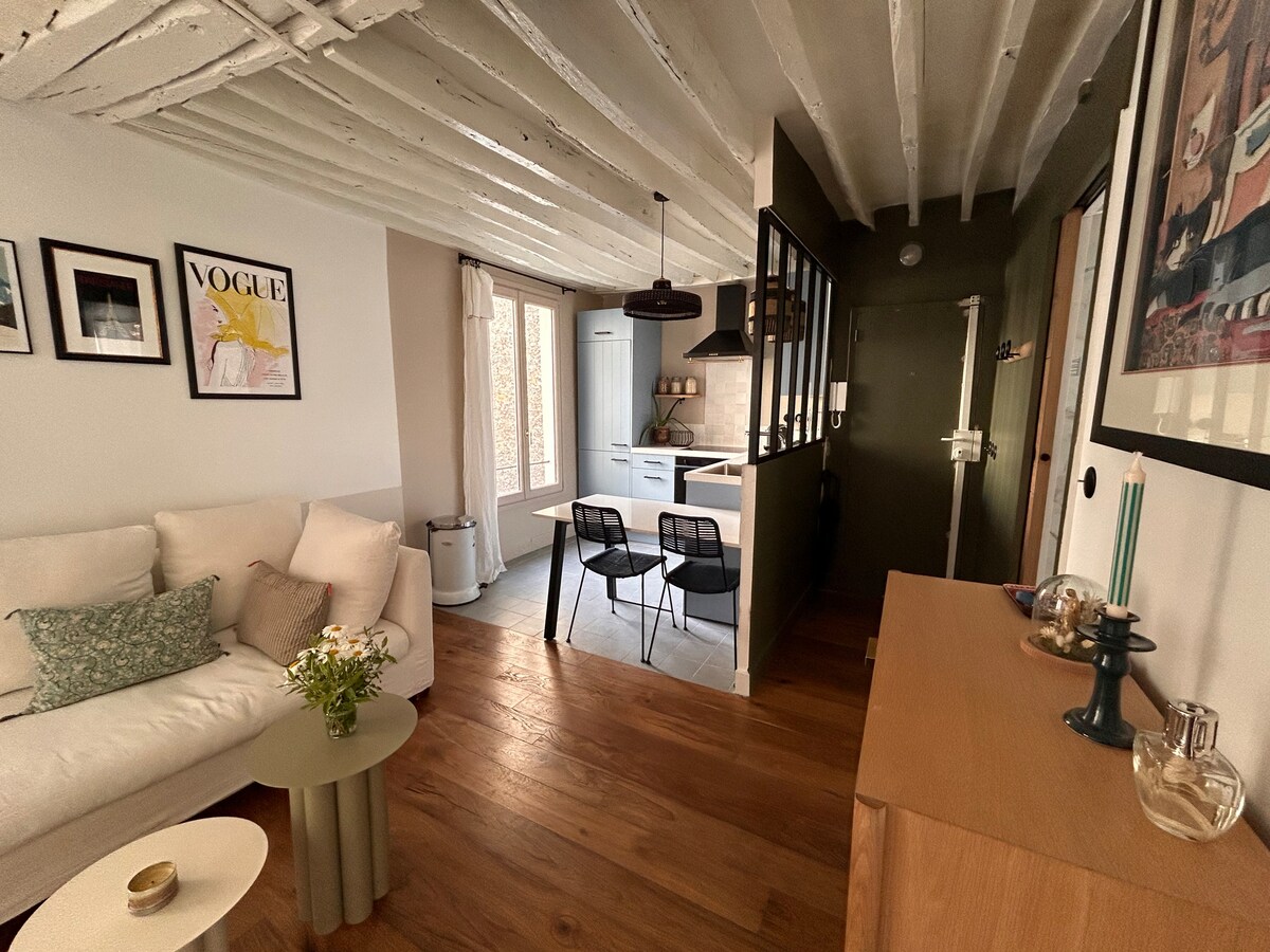The "Sleeping Lion" is a studio nestled in the heart of the Marais district, in a 17th-century building in historic Paris. Carefully furnished and decorated in a boutique hotel style, it combines modern comfort with a soothing atmosphere to recharge your batteries after a day of exploring, shopping, or business meetings. Thanks to its prime location, it allows you to savor the authenticity and energy of a must-see neighborhood, while remaining close to the capital's iconic sites.