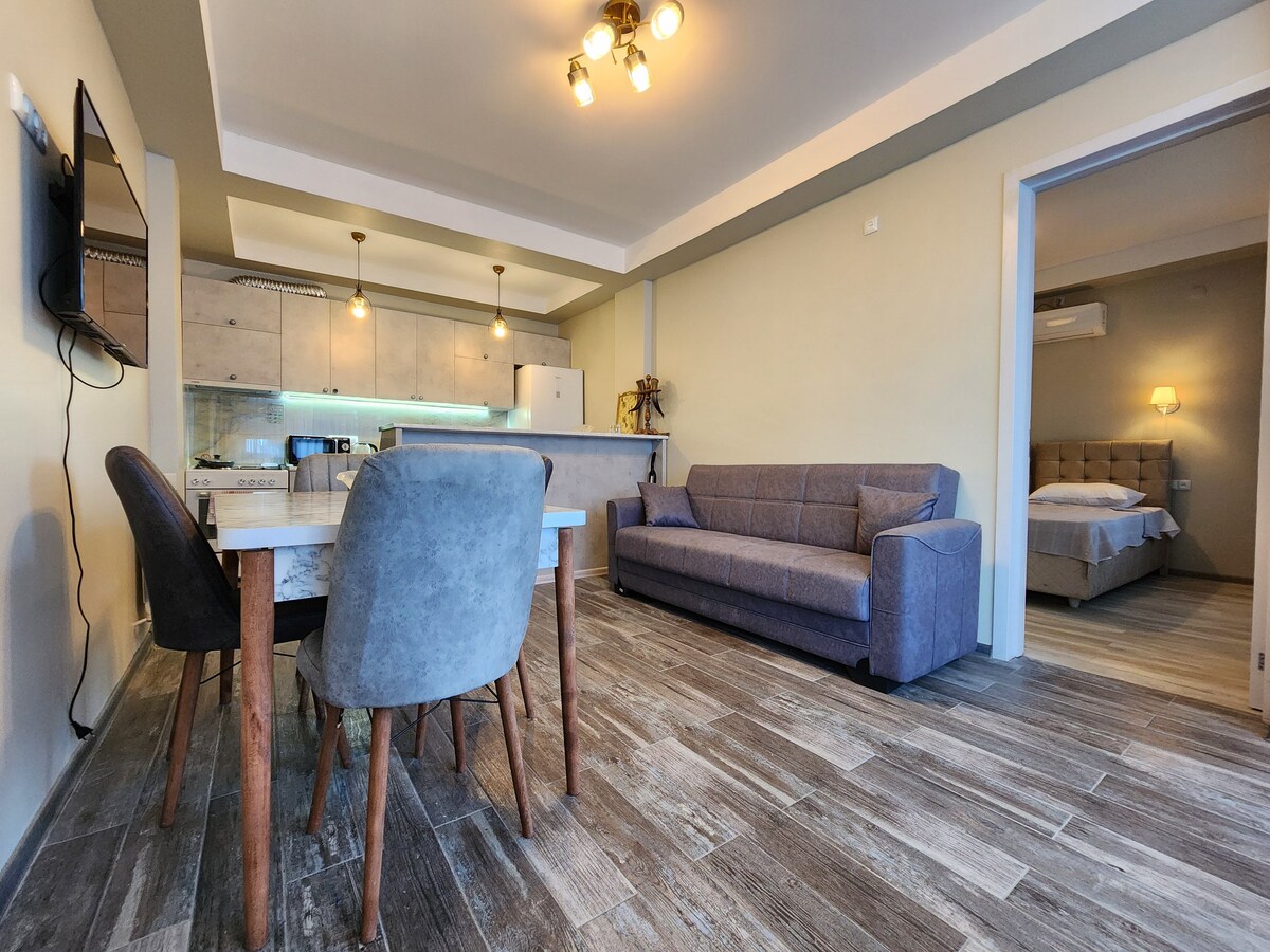 The balcony of this beautiful studio apartment overlooks the Batumi Central Park and is practically on its territory. If you love greenery, a recreational area, a lake, beautiful gardens... this is the ideal place for you. The balcony overlooks the lake. On the fourth floor of a new building, in a studio-type apartment, there is everything for a couple to comfortably relax. Most importantly, the apartment has a balcony, and you can walk to the beach in a few minutes, passing through the lake.