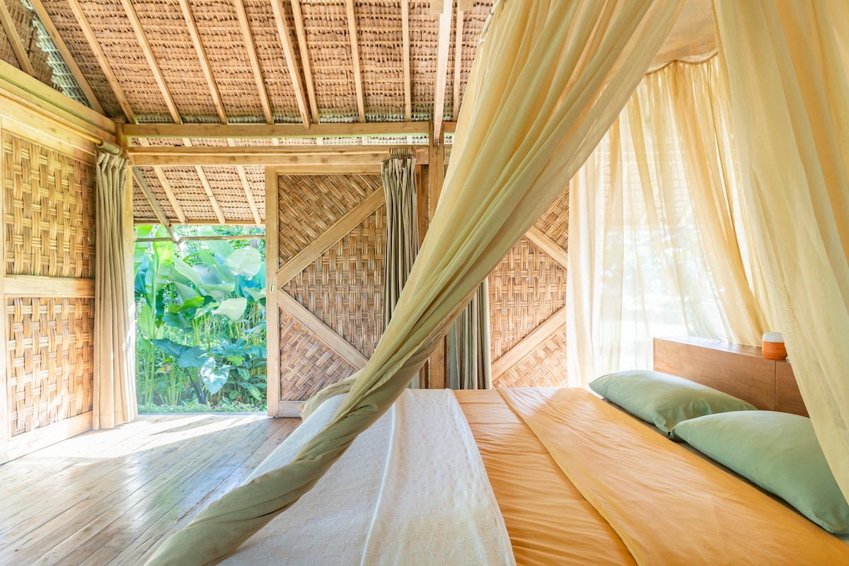 Experience Bali from a birds-eye view in The Avana Treehouse Bamboo Villa. This once-in-a-lifetime bamboo villa experience sits 15 meters high amongst the clove trees on a cliff’s edge. Enjoying the view from any of the 3-story areas will leave you relaxed and with the sensation you are floating in the air. Below The Floating Treehouse are expansive, lush rice fields along the Ayung River that meet the mountains. You can spot Mount Agung Volcano to the left and the Indian Ocean to the right.