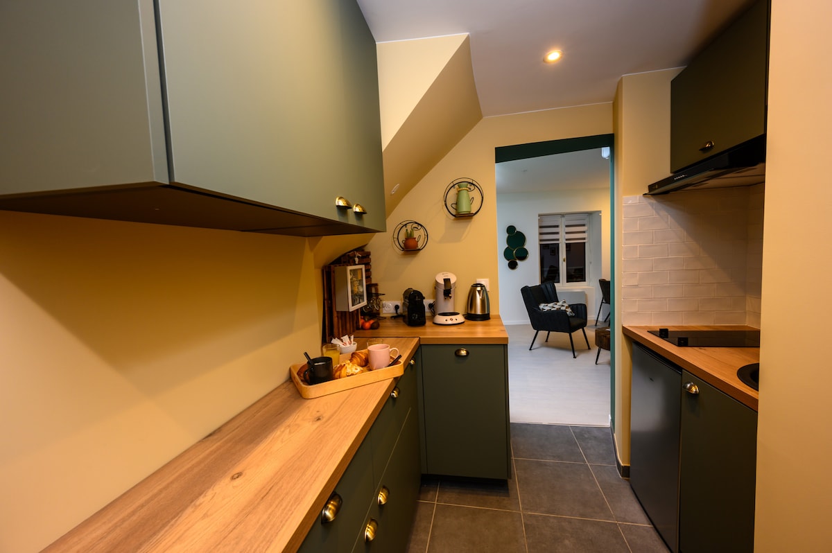 80 m2 / 3 suites, each with its own private bathroom! Unique in Montbéliard / premium amenities Right in the historic center with panoramic views! Ideal for remote working, business trips, families, groups of friends, weddings, etc. No more waiting in line for the bathroom, keep your privacy and enjoy with your loved ones in our beautiful living room Easy parking!