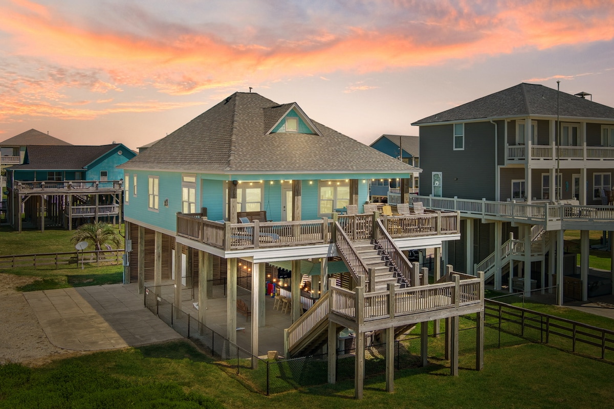 Beaches & Dreams Beach House, Crystal Beach (Near Galveston) ~ 7 person PLUNGE POOL*/HOT TUB ~ Sleeps 14 ~ 5 min walk to the beach or drive to park directly on the sand ~ Fireworks/Bonfires OK @ the Beach** ~ Backyard Fun: CANAL FISHING + Tiki Bar + TV + Charcoal Grill ~ 2 balconies to enjoy sunrise views & the ocean breeze (obstructed ocean views) ~Gated community. Safety is our priority. *Plunge Pool Ambient/Min Temp = 75F **Check Galveston County website for restrictions/bans