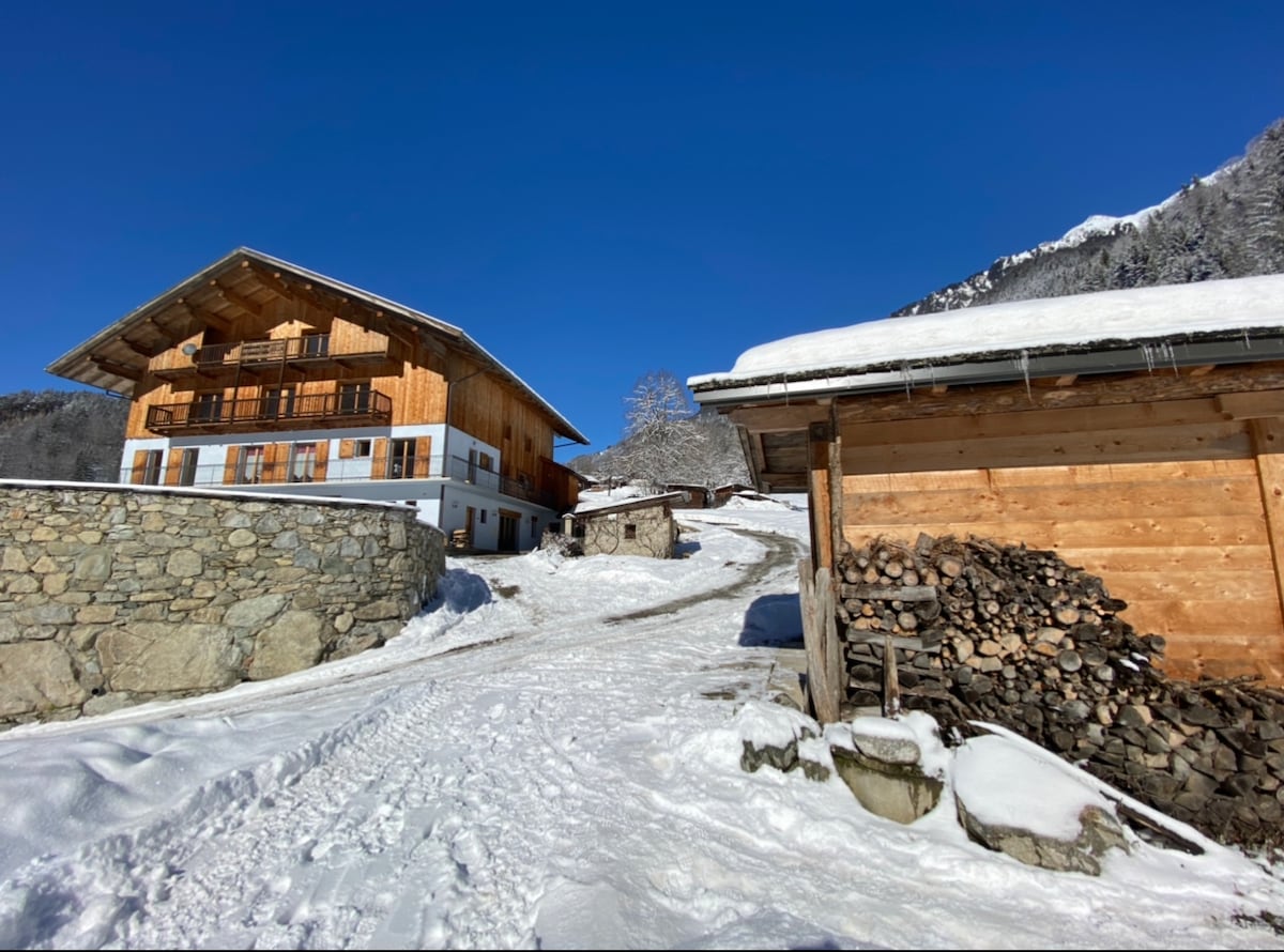 Charming Old Wood and Stone Chalet view Mont Blanc