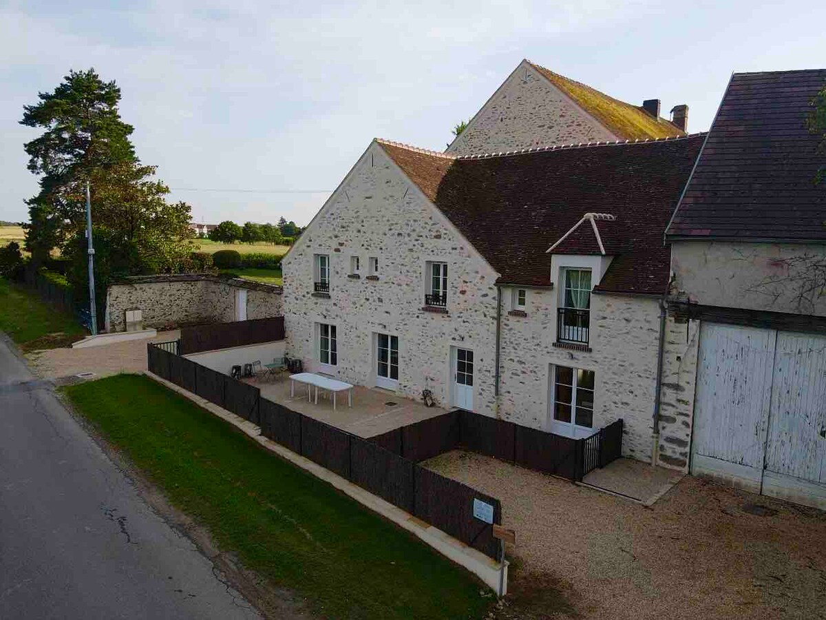 Your accommodation is on the 1st floor of this beautiful Briard house bordered by fields, in a quiet area. From the kitchen and living room you will have views of a very large wooded garden, from the bedrooms, views of my garden You can park your vehicles in the yard behind the house. Coulommiers is 7 km away and there is a direct train station to Paris Gare de l'Est. - Close to Disney, 35 min, - Village Nature 25 min, - Provins medieval city 28 minutes, - karting 8 min, - Parrot World 25 min - Paris 50 min