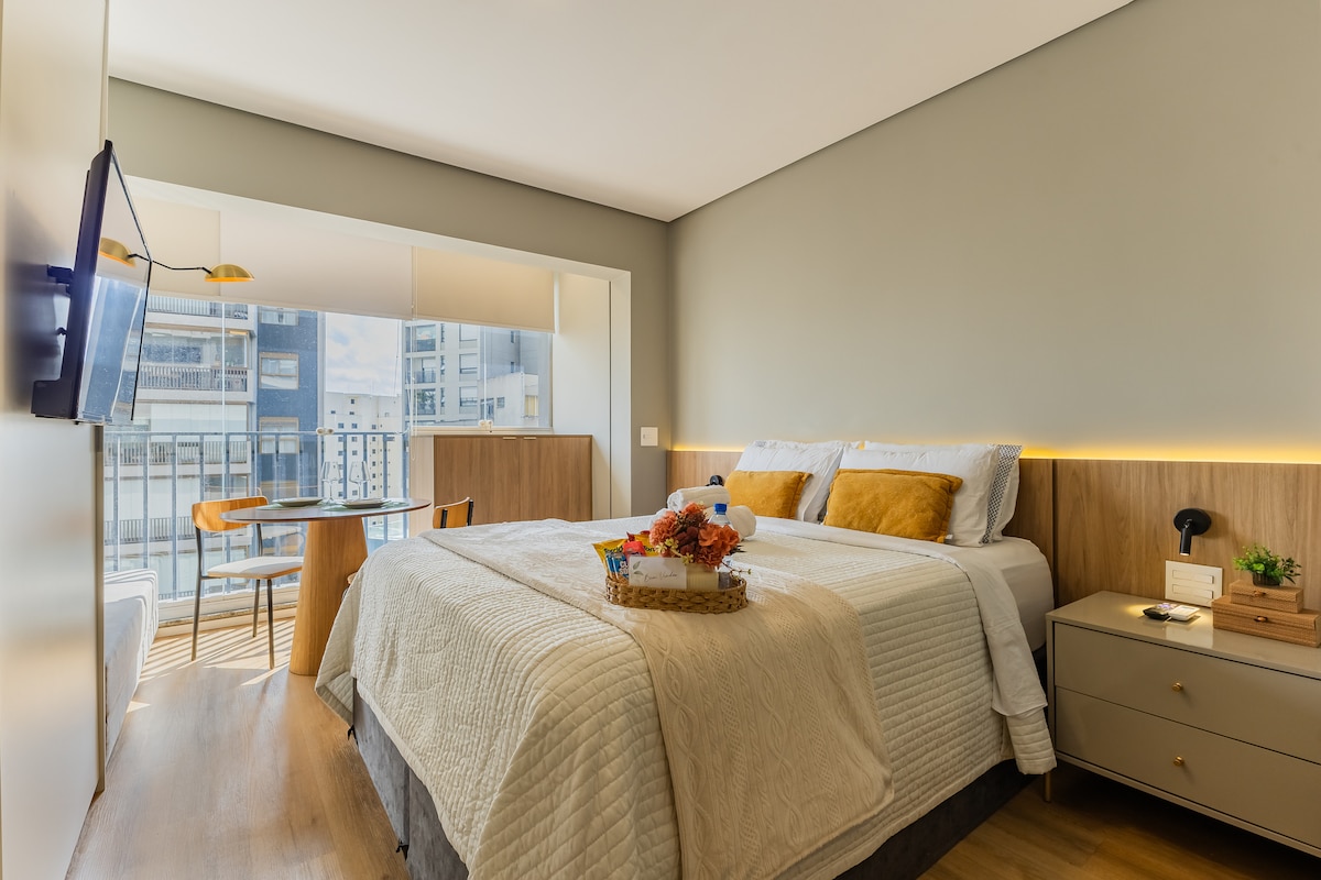 A spacious, quiet, and stylish apartment in the heart of Jardins. Perfect for couples and business travelers, featuring sophisticated design, a king-size bed, fully equipped kitchen, and a comfortable home office. Warm lighting and an unbeatable location. A stay with personality, comfort, and practicality. Easy access to the city’s best restaurants, shops, and business centers. Book in advance — our calendar fills up quickly!
