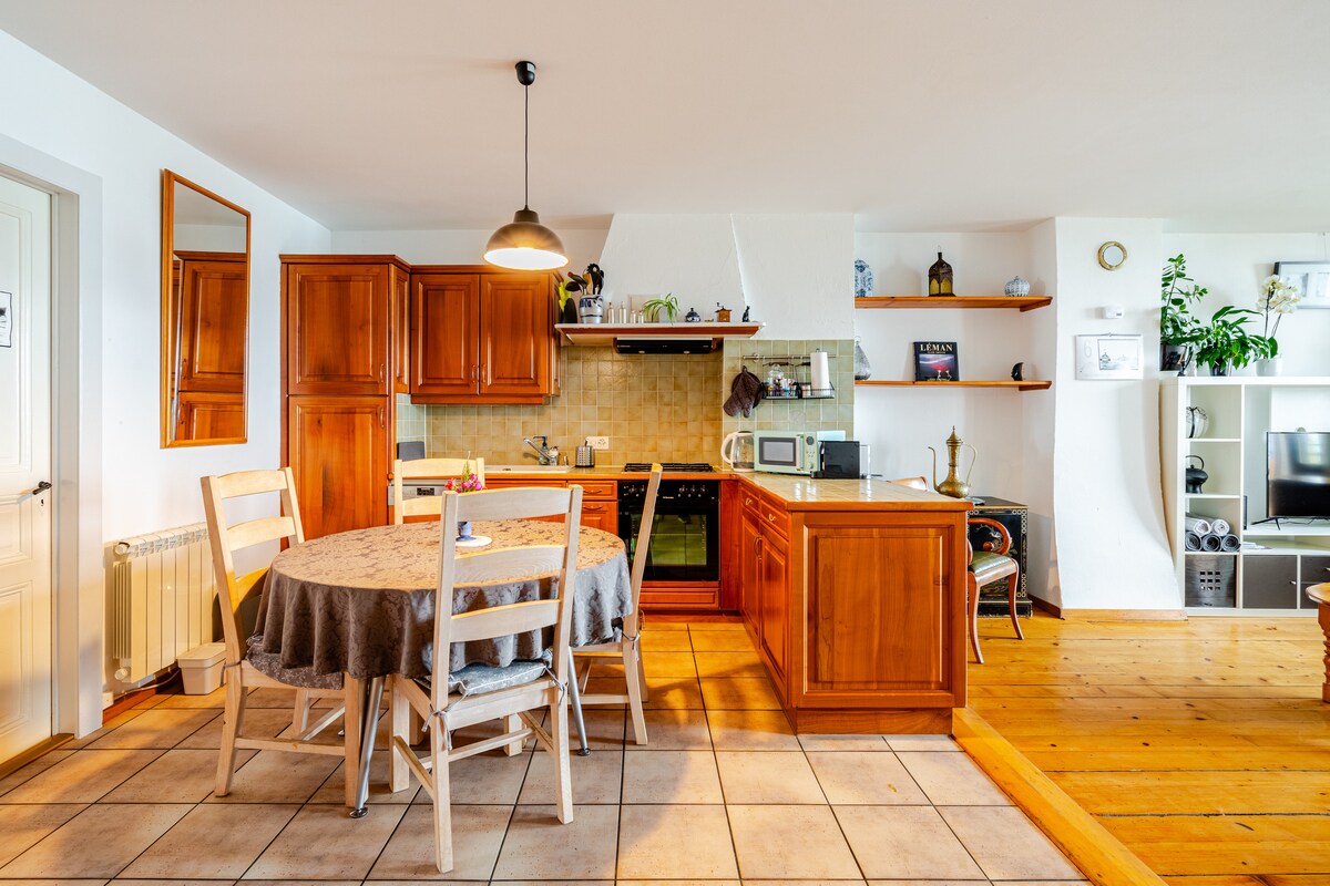 80 m2 apartment with character in a historic 17th century house. Ideal for 3 people but can accommodate up to 5 people. In the beautiful village of Saint-Saphorin in the heart of the UNESCO World Heritage site of Lavaux. Two beaches are a 5-minute walk away, and all the beauties of the Lake Geneva region are within easy reach. Lavaux Card to travel for free in the region with public transportation.