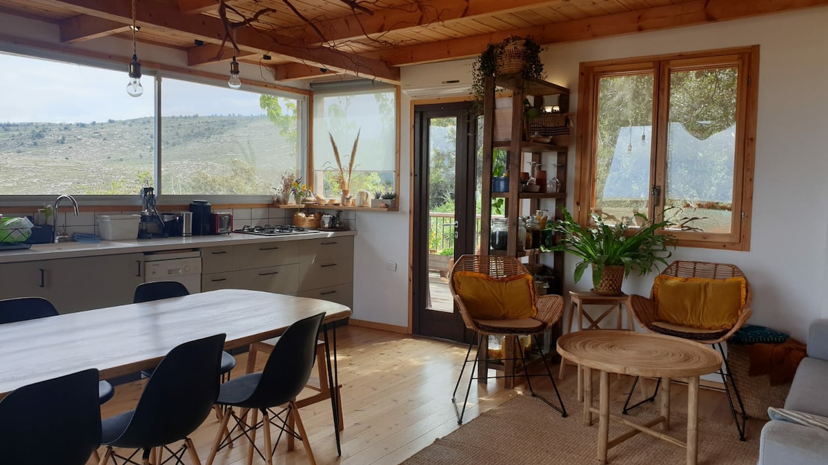 A spacious vacation home in the Jerusalem Hills for families! 2 bedrooms, a yard with a swing for children, a spectacular view. 10 minutes from Ein Kerem, 15 minutes from the Old City. Living room, dining area, fully equipped kitchen, convenient parking and walking distance to the mall. There is an adjacent unit - you can rent both together for up to 10 guests!