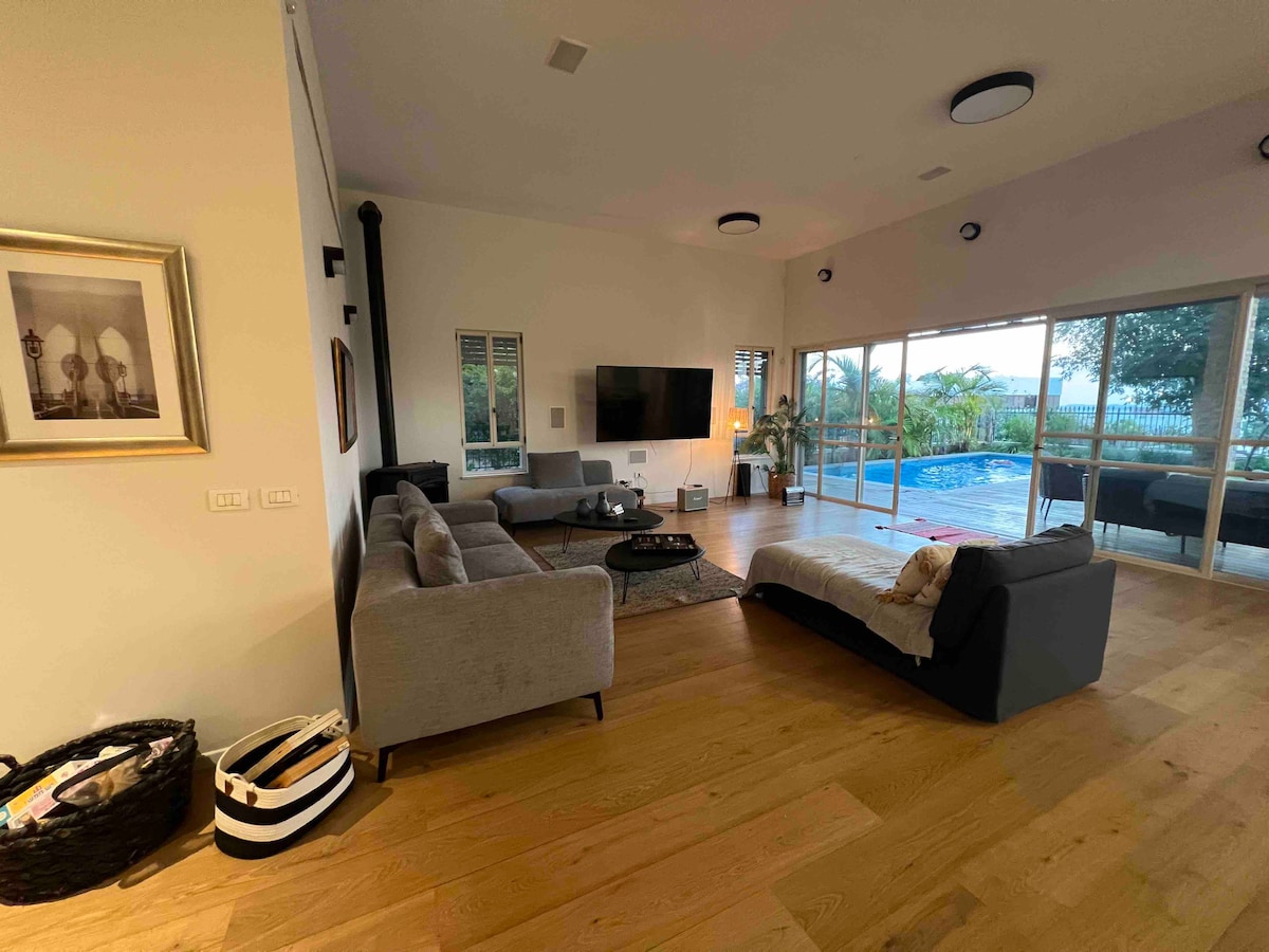 New villa in a gated neighborhood. 4 Bedroom, 4 Bathroom with pool and fireplace. 20 Minutes from Tel Aviv, 4o minutes from Jerusalem and 10 minutes from the most beautiful beach in Israel Palmachim and Weizmann Institute. No children under 12 years old allowed (for safety reasons). לא למסיבות וארועים! מתאים להתארגנות חתן וכלה. בית מפנק עם שולחן פינג-פונג , בריכה, ברביקיו, שש-בש ועוד. מטבח מאובזר בכלים, טוסטר,מיקרוגל ,מדיח כלים מכונת כביסה וייבוש. חדרים גדולים ומפנקים הכל נקי וחדש ברמה גבוה