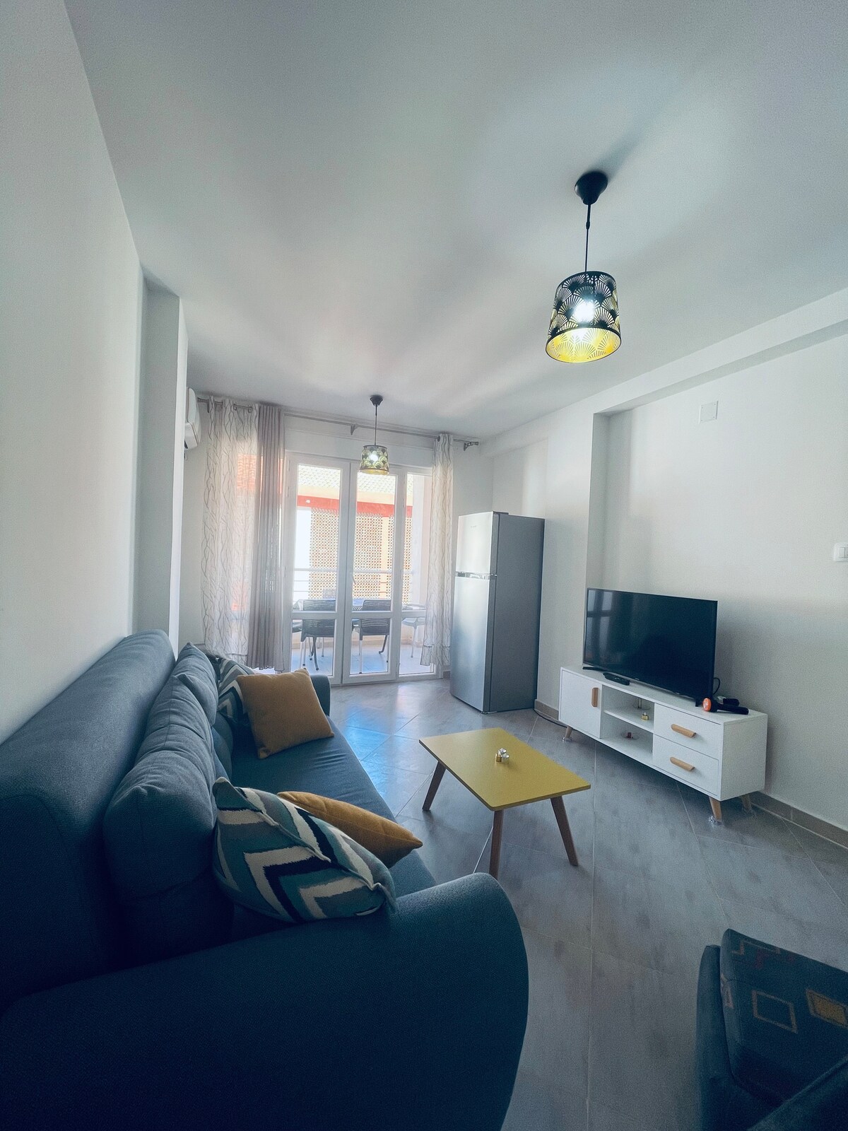 Relax in this beautiful, spacious, quiet and warm apartment, completely new and equipped (air conditioning, central heating, dishwasher, washing machine and TV) ideally located in the city center in a secure residence, two large bedrooms, a large bright living room and an equipped kitchen. Nearby you will find shops, stores and public transport allowing you to move around easily in the city of Bejaia, free parking completes the property.