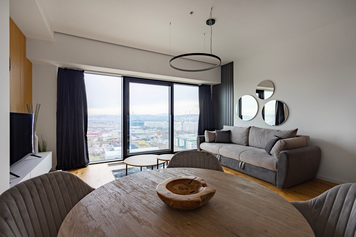 Located in the tallest high rise in Belgrade, Genex tower, built in brutalist style. This 70 square meters apartment, on the top, 30th floor, the highest residential residence in Belgrade, offers you the best and unique view that will spread from Kalemegdan and old town to all significant landmarks of the city. Fully renovated and decorated in a modern, wenge minimalist way it also offers HDTV and WI-FI. Our place is good for couples, couples with kids, solo adventurers and business travelers.