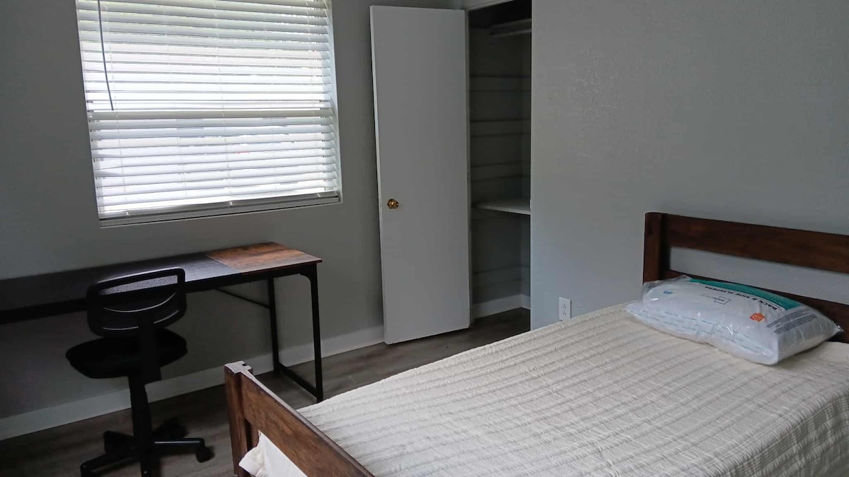 Our small, clean, cozy, guest suite (about 220 sq ft) is located in our fenced backyard. It is detached from our house with a private entrance, in a quiet and safe residential neighborhood. It isn't fancy, but it's a good space for spending a few days while visiting Jax. We offer keyless check-in and free parking is in our driveway. A queen Sealy Posturepedic bed provides ultimate comfort. The suite has a mini-fridge and microwave for simple meals (no full kitchen).