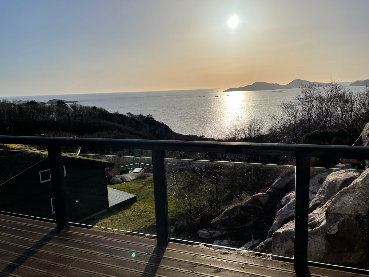 Welcome to sunny and idyllic "Knatten" An architect-designed cabin in a secluded location by the lake with beautiful views over Egelandsfjorden with great fishing and swimming opportunities. The cabin is fully furnished and contains most of what you need to have a great stay including a Weber gas grill on the sunny terrace. 2 bedrooms in total with beds for 7 people+ (possibility of extra mattresses). Cozy annex with bedroom and master bedroom with double bed and loft bed in the cabin.