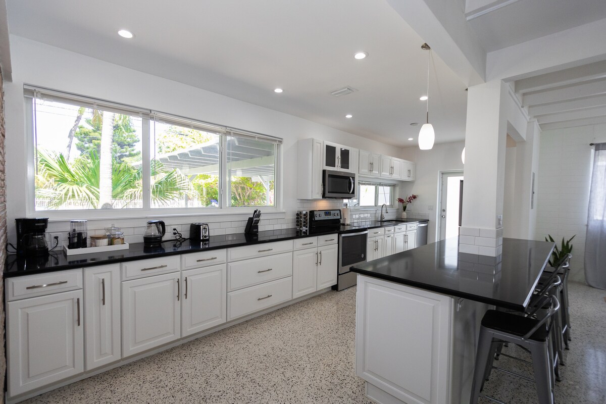 Gorgeous mid-century tropical home with spacious open layout, oversized modern kitchen & full of natural lighting. Fast WIFI for working professionals. Large backyard featuring a beautiful mature Banyan tree, high-end BBQ, tasteful outdoor seating area. The perfect setting to enjoy your vacation with friends and family! Located in a safe & peaceful neighborhood, just mins from beach, downtown & all that Miami has to offer. If you're looking for the perfect vacation, this home is ideal for you.