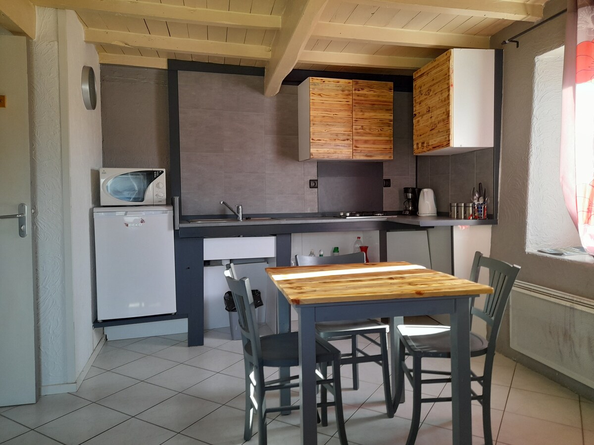 studio for 2 or 3 people, 23 m2, plus mezzanine on Saint Galmier. Enclosed courtyard. reversible heating with air conditioning, TV, equipped kitchen, Senseo, kettle, sofa bed that converts to 140 on the ground floor. 1 bed in mezzanine 160×200. Linens provided. Bathroom with shower, heated towel rail, 1 sink, toilet and towels provided Upstairs, a mezzanine with 160 x 200 bed. Air conditioning. Pets not allowed. No smoking. Parties are forbidden. Before booking, please contact me.
