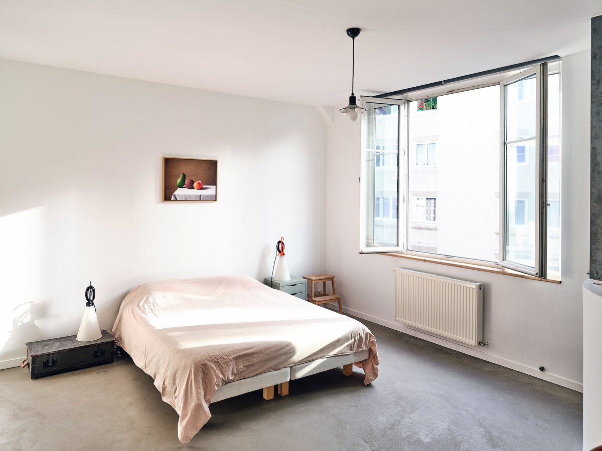 Baigné de lumière, penthouse d’architecte pour 2 à 4 personnes. Séjour de 70m2 exceptionnel avec verrière et grandes baies vitrées traversantes donnant sur la terrasse au milieu des arbres et des oiseaux. Cuisine à l’américaine bien équipée et un espace bar convivial. À l’étage, la mezzanine ouverte avec chambre à coucher et bureau de travail; salle de bain, baignoire, douche, WC, rangements. 3ème étage sans ascenseur.