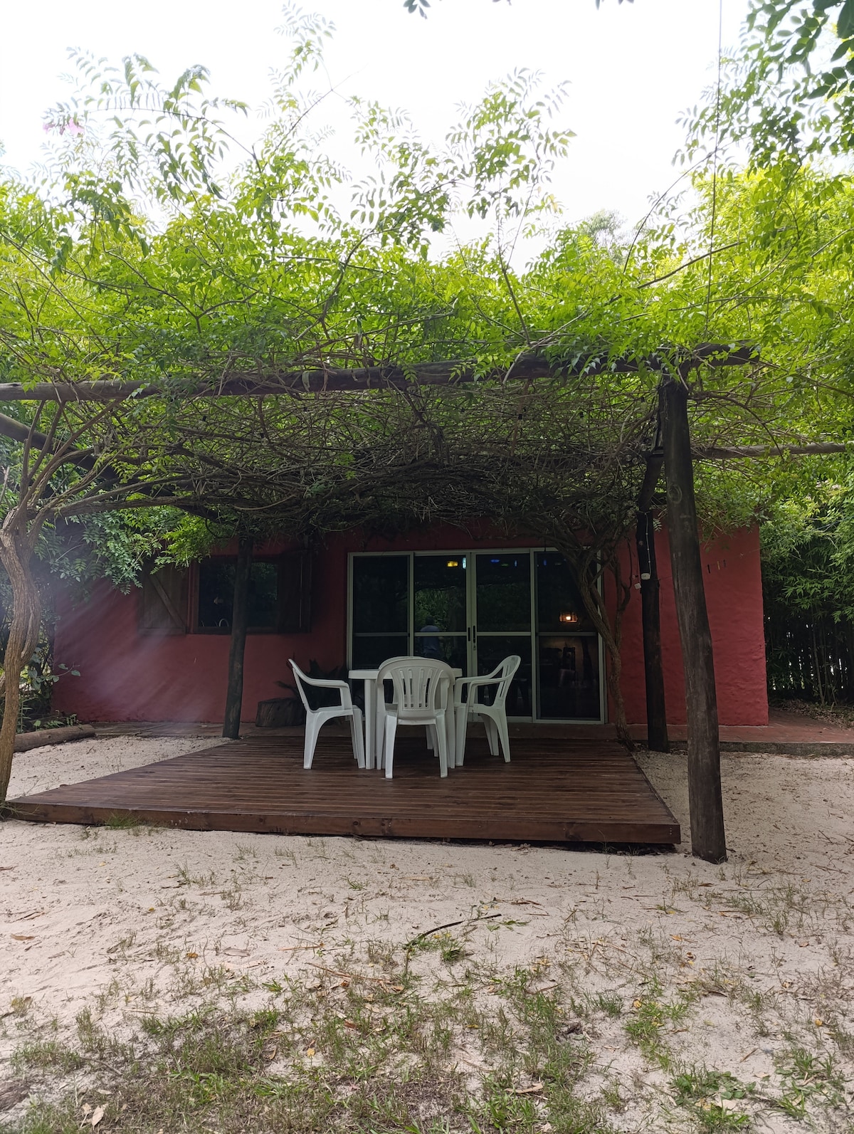 This cabin shares land (900m2) with two others. Excellent location. One block from La Bajada 1 in La Floresta. 200 meters from the beach and the mouth of the Solís Chico Creek. A MOVIE-LIKE place. Air conditioning, Wi-Fi, hot water, grill, balcony. Maximum 4 people. 51.5 km from Montevideo, 5 km from Atlantis and 50 km from Piriápolis approximately.