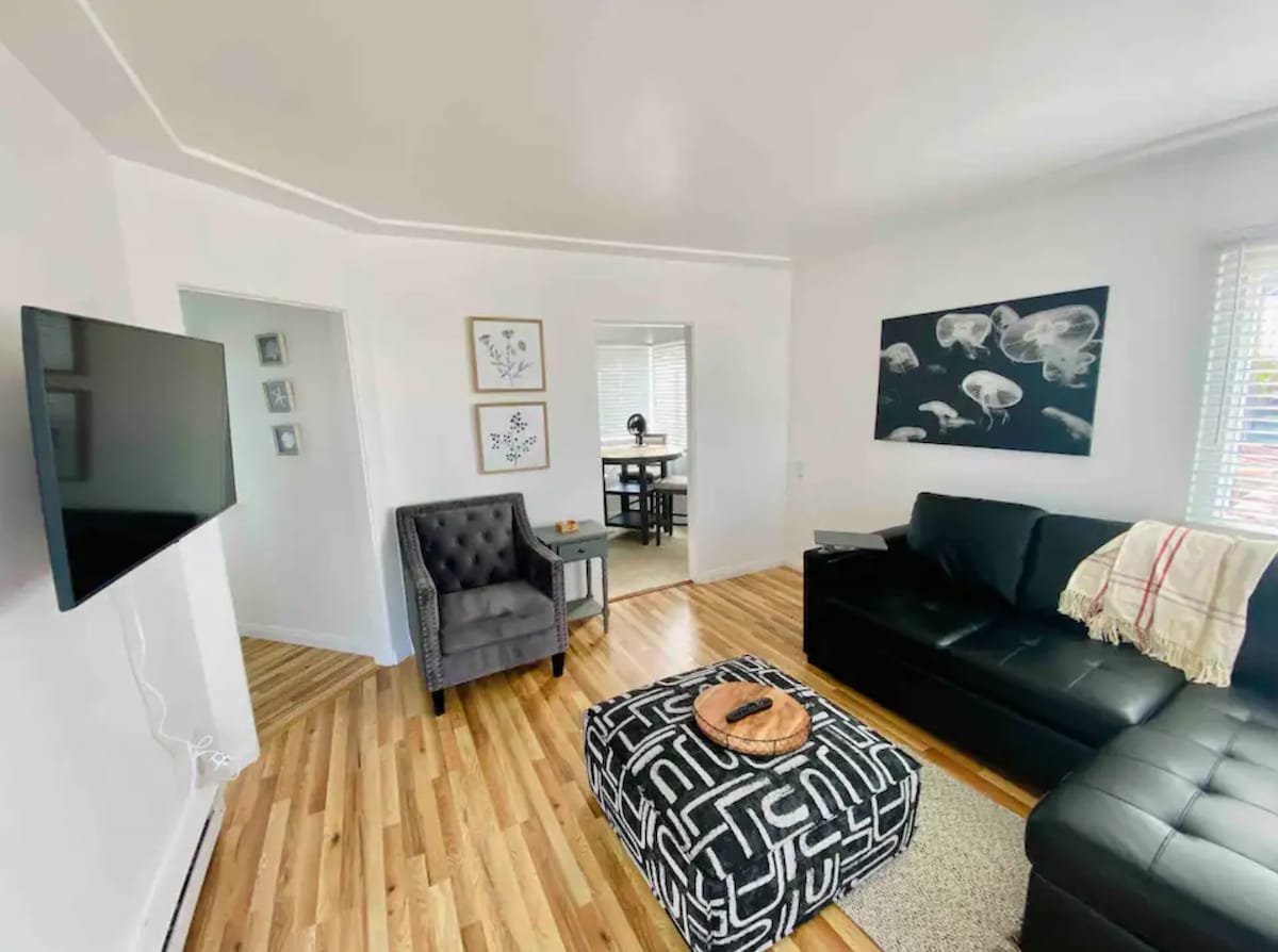 Indulge in a delightful escape at our charming 1-bed, 1-bath apartment in Mission Beach! Just a 2-minute stroll from the BEACH OR the BAY, it's an ideal haven for couples or small families. Unwind in the cozy space and rest on the cozy queen-sized bed. Take advantage of the well-equipped kitchenette, complimentary bikes and beach supplies. Whether you prefer relaxing on the patio deck or exploring the sandy shores, our goal is to provide comfort, convenience, and unforgettable memories..