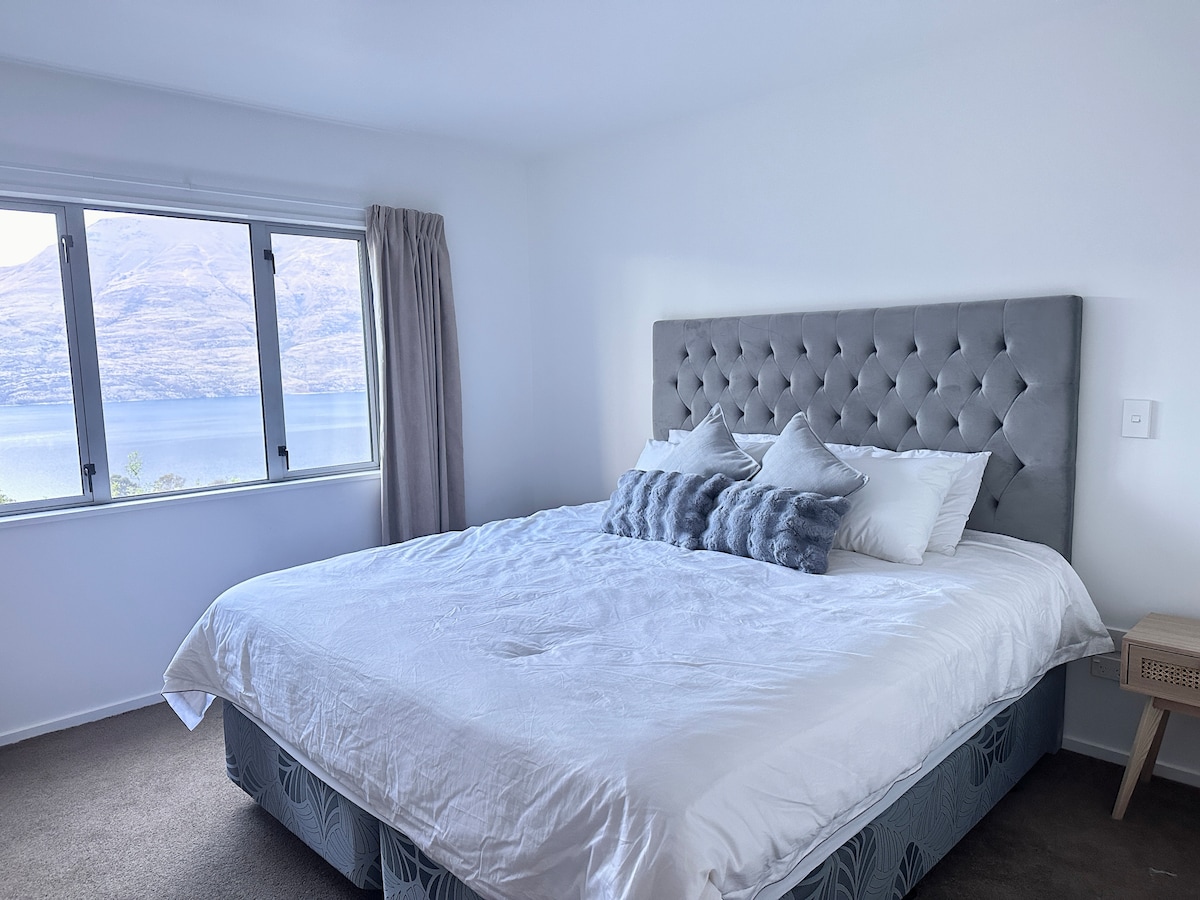 Stunning views of Queenstown Bay, the lake, and Skyline gondola, used for NZ calendar! Just a 5-8 min walk to the CBD. This spacious retreat features one convenient onsite free parking spaces. Full modern kitchen, spa bath, office and conservatory, laundry, dryer inside. Each bedroom includes a makeup space and hair dryer. Stay cozy with air conditioning, a heat pump, electric blankets and gas fire. Enjoy privacy, breathtaking sunsets, and unbeatable scenery from this perfectly located home!