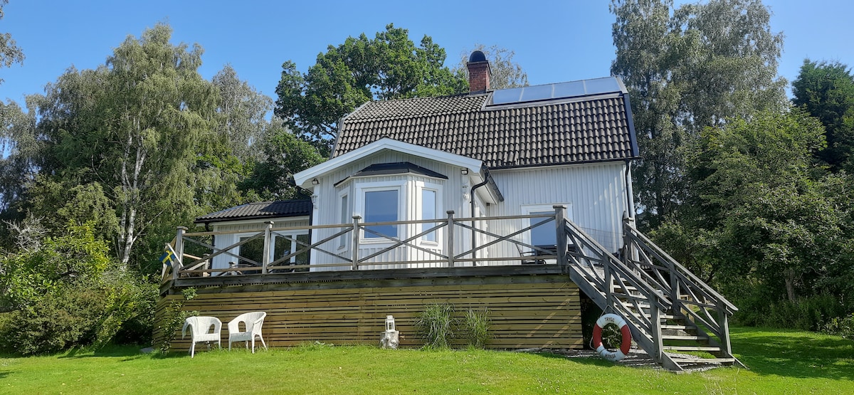 Lillstugan is located on a farm where there are cows, chickens, cats and dogs. The beds are made and there is breakfast in the fridge when you arrive. Lillstugan has 3 beds on the ground floor and 3 on the second floor. Kitchen has dishwasher, microwave, fridge/freezer, electric stove with oven and wood stove. TV room with sofa. Small patio with garden furniture and grill. Balcony with seating. There are roads and trails in the forest where you can walk or bike. It is 300 meters to a private beach with a jetty.
