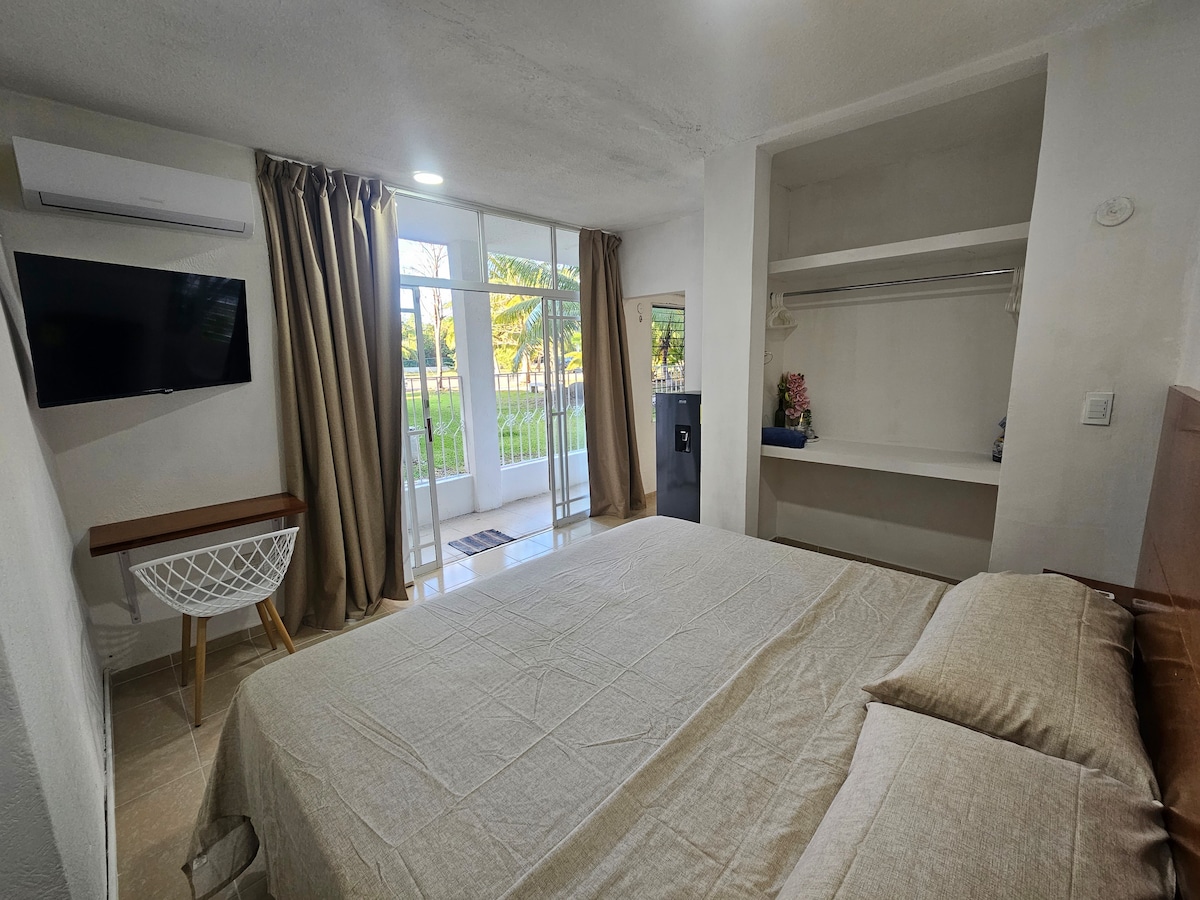 Unwind in our sun-drenched sanctuary! This cozy, sparkling clean studio in a charming Mexican neighborhood is perfect for 2-4 max guests. Relax in the comfy king-size bed, lounge on the sofa-bed, or sway in the hammock for an afternoon siesta. Catch a movie on the Smart TV after exploring. You’re just 5 minutes from the beach, downtown, and the Isla Mujeres ferry. Affordable, quiet, and full of heart—your peaceful Cancún escape starts here. Book your stay today!
