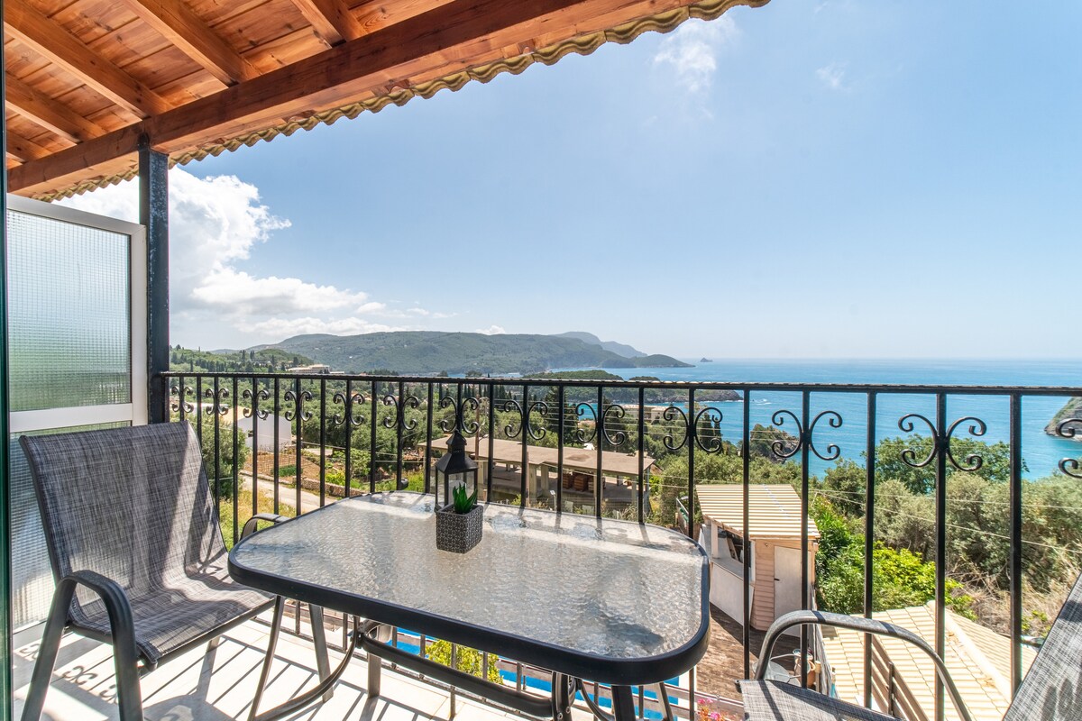 Opening to a balcony with Ionian Sea views, this two-bedroom detached apartment has a breathtaking view of Agios Gordios bay and the vine-covered canopy of our outdoor taverna. With a mountain backdrop behind and to the side, the Garden Apartment is an ideal place to relax, indulge your senses and unwind from everyday life.