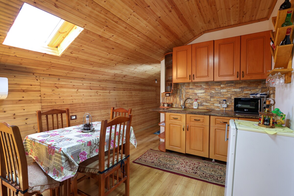 A charming wooden retreat surrounded by nature, blending rustic charm with modern comfort. Features warm wood interiors, a fully equipped kitchen, and a peaceful outdoor space—plus convenient private parking. Perfect for a relaxing getaway! ✔ Cozy & Unique ✔ Private Parking ✔ Nature Retreat Ideal for couples, solo travelers, or small families. Book your serene escape today!