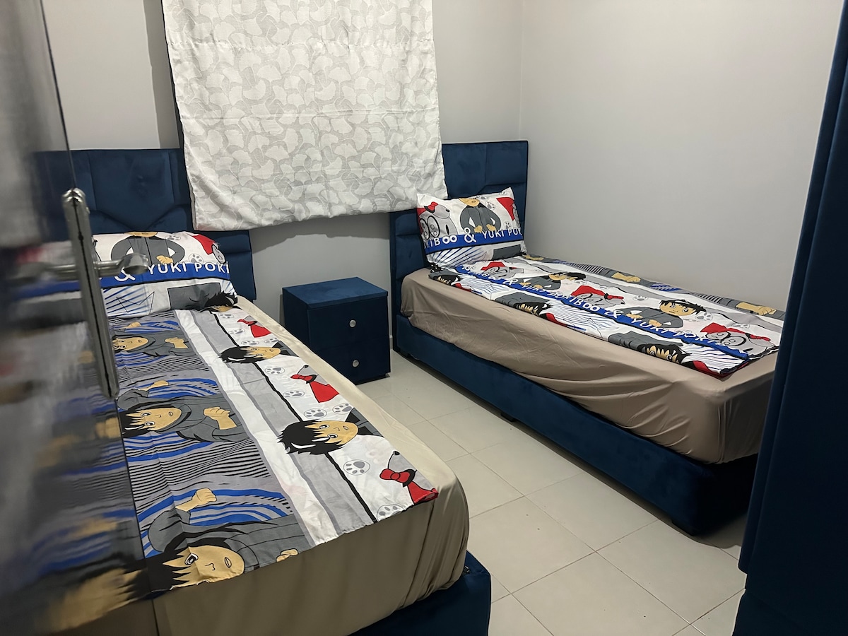 Have fun with the whole family or friends in this stylish place, a new and modern apartment in Saida. It is located in a quiet and safe area and provides you with complete comfort and relaxation. The apartment is 20 minutes walk and 5 minutes drive from the sea, making it ideal for lovers of the sea 🏊♂️ 🐬and tranquility. 😌😎