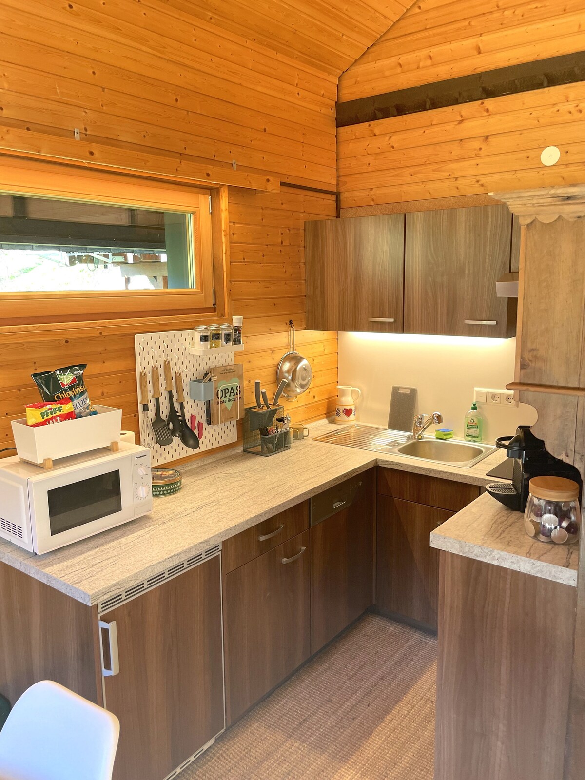The heated Waldhauser Hof Fässle offers a unique overnight experience. The quiet retreat is designed for two people and has a cozy double bed, a seating area, storage space and a kitchen corner with a wash basin and refrigerator. Outside, a seating lounge invites you to relax. A dry separation toilet is located next to the barrel. Please note that there is no shower. Ideal for those who enjoy nature and want to relax!