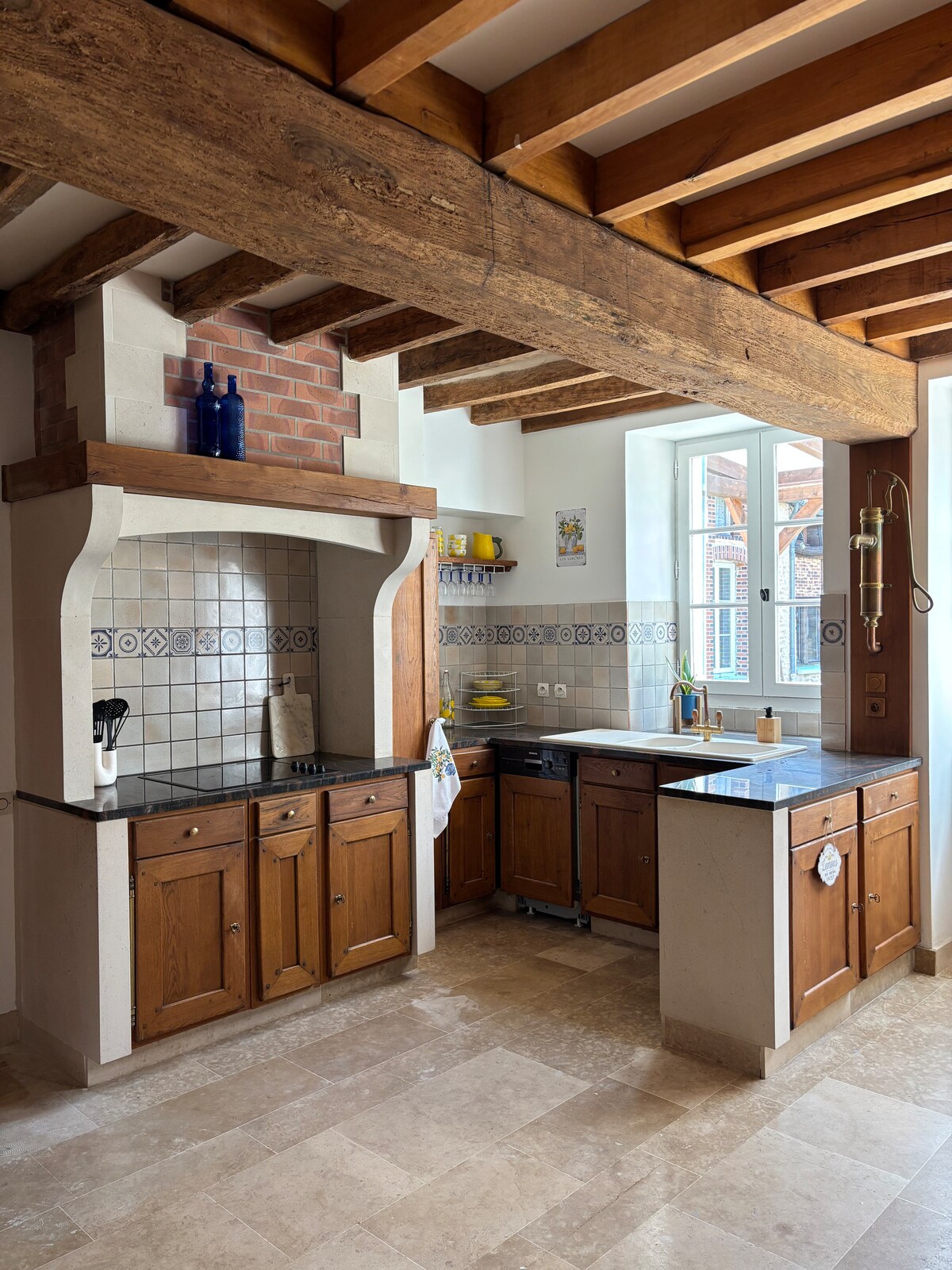 Our accommodation was created by our hands, in old grain boxes. It is composed of a large living room, with a fully equipped fitted kitchen (induction cooktop, oven, dishwasher, etc.), a dining area and a TV area with a sofa bed. A first bedroom with a double bed, and a second bedroom also with a double bed. Bathroom with walk-in shower, laundry room and toilet. Terrace and parking