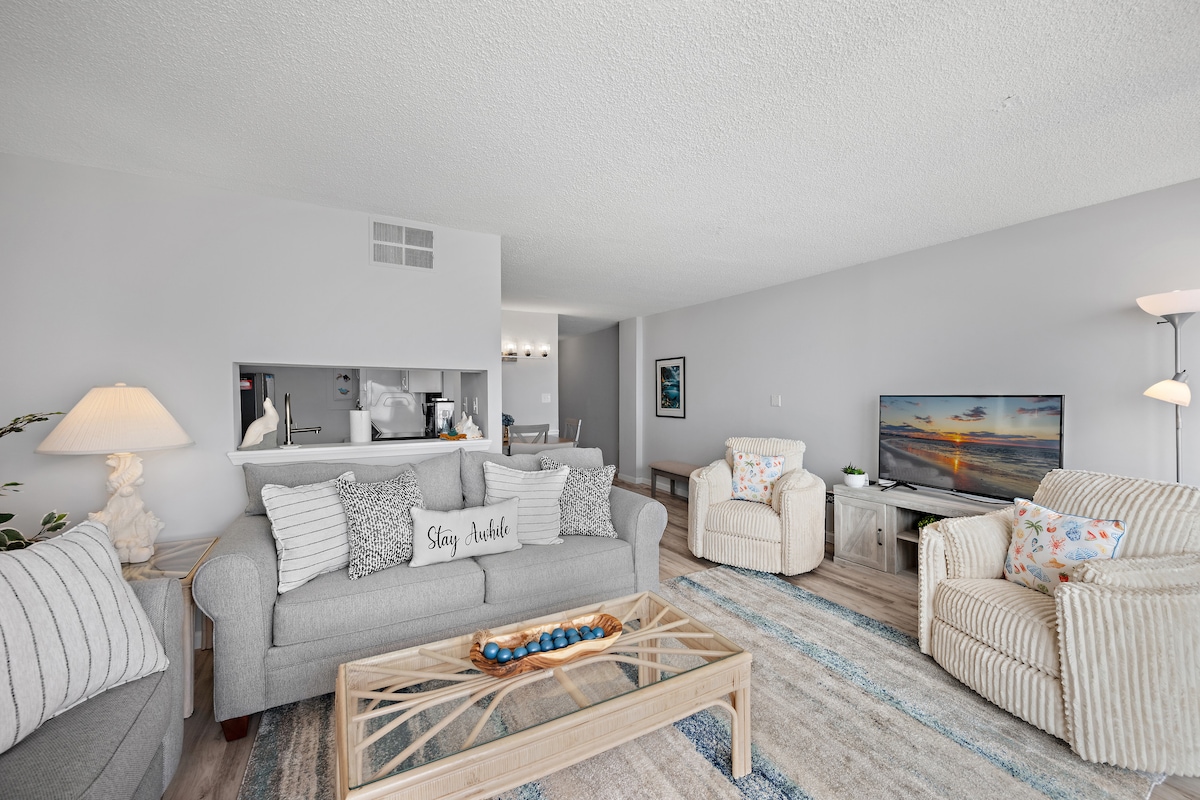 Absolutely stunning studio condo in the iconic Golden Sands! Private balcony offers amazing direct ocean views, and overlooks the building's sun deck. Updated kitchen with stainless steel appliances. Murphy bed & sofa bed allows the unit to sleep 4 comfortably. Includes HBOMAX, Disney+, and electric fireplace. Stylish bathroom with toilet and shower conveniently separated from sink. Building offers restaurants, pools, game rooms, and more! Golden Sands has a $75 registration fee.