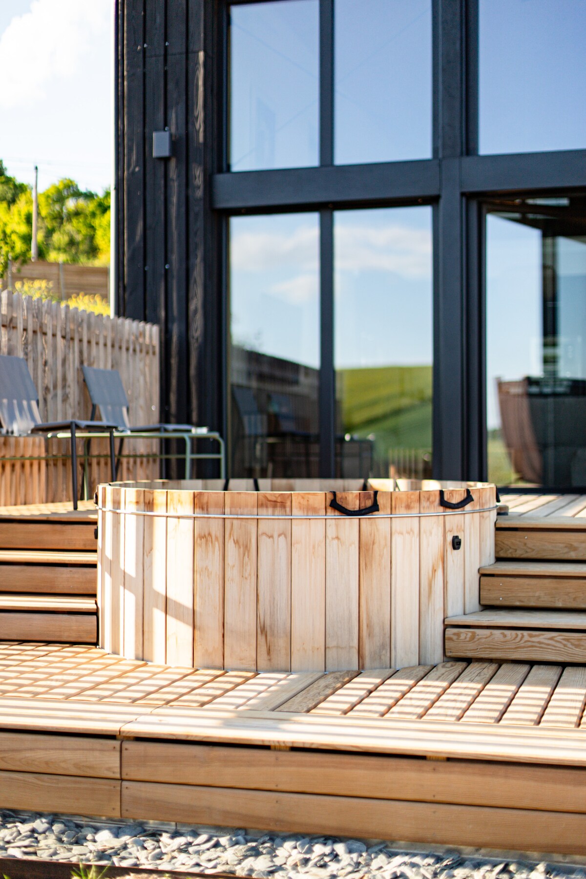 Luxury eco-lodge with wooden Nordic hot tubs