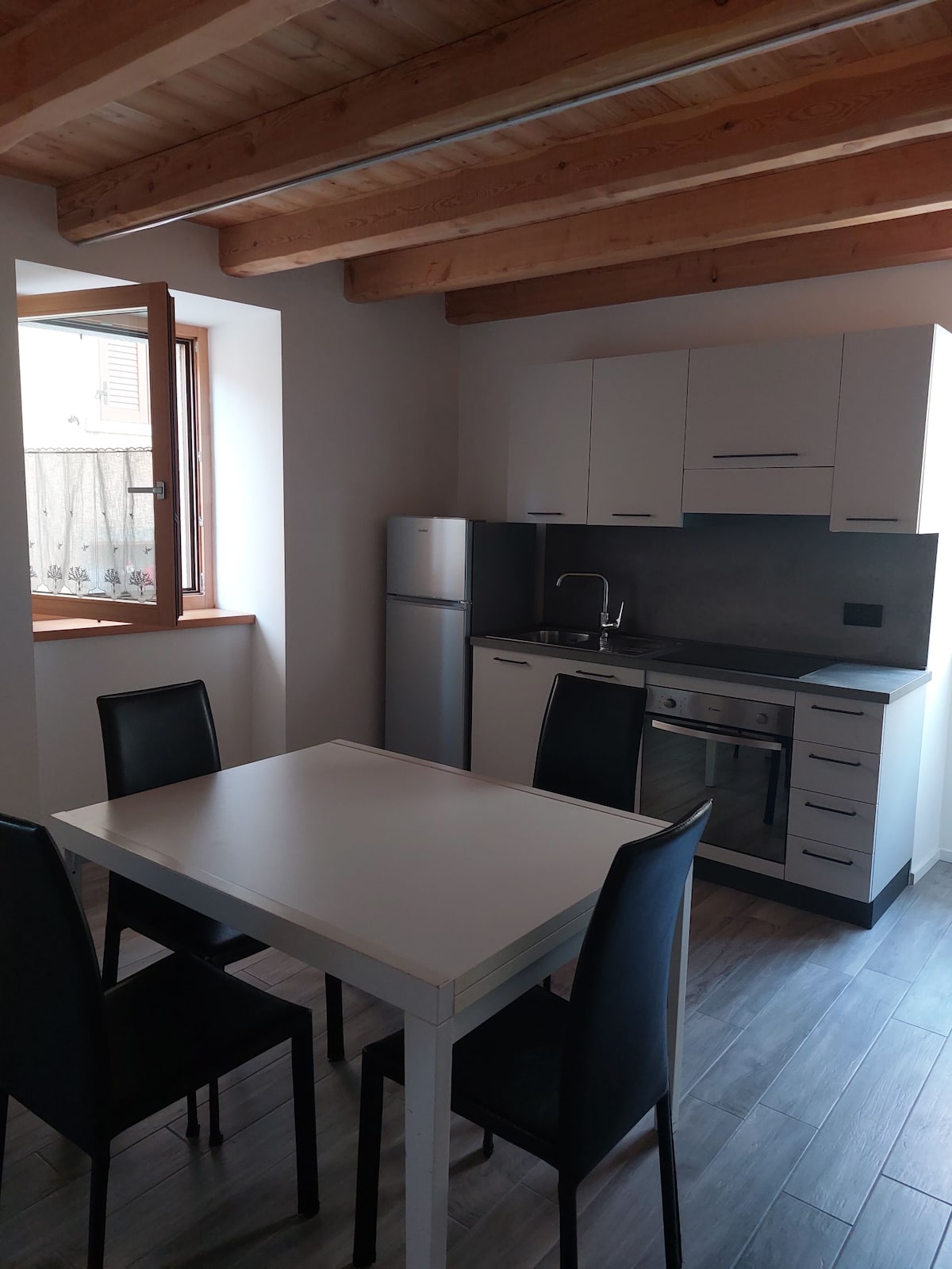 Apartment renovated in 2023 in Molina di Ledro, a short walk from the lake. On the ground floor with a private garden, perfect for relaxing or having breakfast in the sun. Cozy interiors with a wood-burning fireplace, a sofa for reading, and a modern kitchen. Quiet area, parking and bike storage. 200 m away is a market with fresh bread every morning. Ideal for couples looking for nature and comfort.