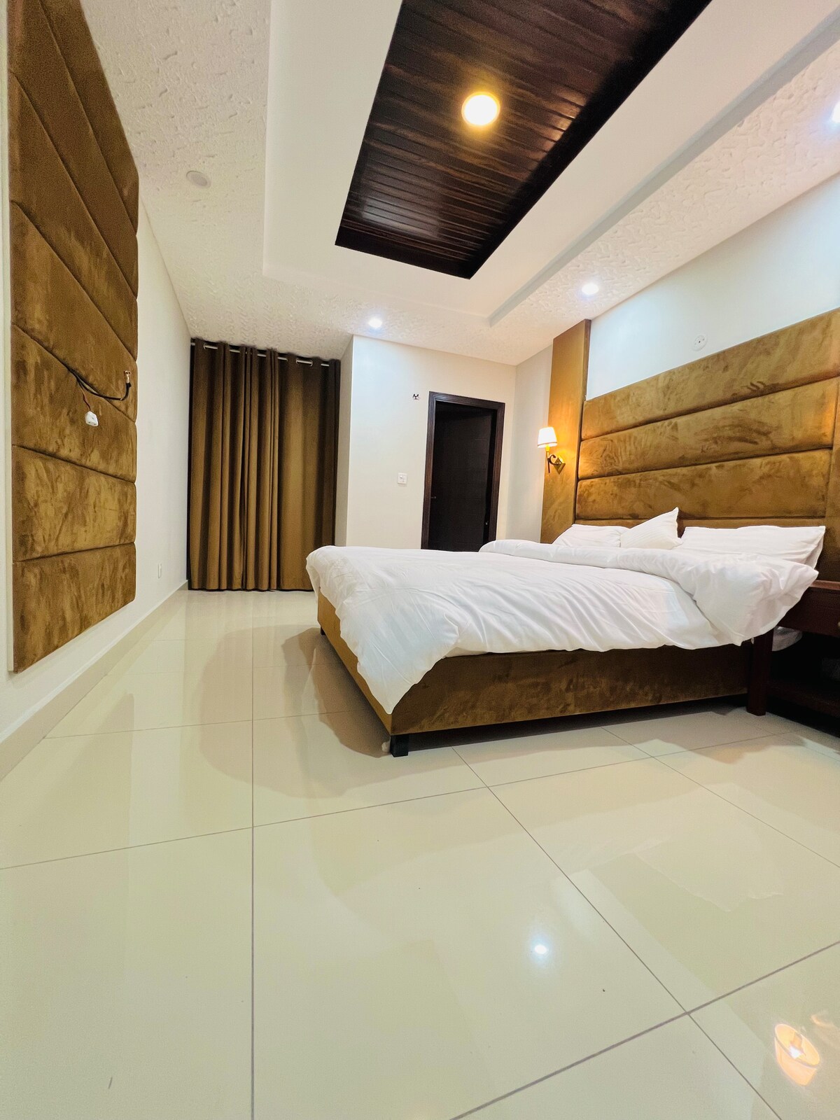 Step into refined comfort. Our Boutique Luxe Suite blends soft aesthetics, warm lighting, and timeless design — all at Kashmir Point, right on Main Bank Road. Enjoy 24/7 housekeeping, secure parking, a rooftop live BBQ, and an intimate private cinema under the stars. With a restaurant on the top floor, every moment feels curated, cozy, and beautifully luxurious.