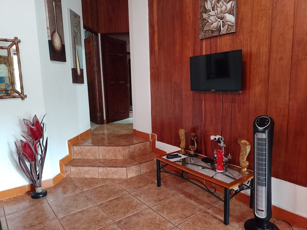 Desde este alojamiento céntrico todo el grupo podrá tener fácil acceso caminando ya que se encuentra a 250 metros de la terminal de buses de Quepos Centro y de toda la zona comercial. Con buses a Manuel Antonio cada 15 minutos Apartamento en planta alta con 3 Habitaciones ( 2 con baño dentro de la habitación) 1 Habitación con Literas para reservas de (+ 11 pax ) Todas con las habitaciones con AC Wifi 200Mbps Cocina induction, coffee maker , sandwichmaker No parking NO HOT Shower/ No Pool