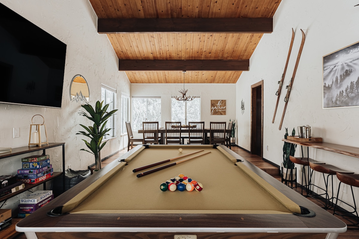 Conveniently located between Snow Summit, Bear Mountain and Big Bear Lake, Meadow View Escape has it all! HOT TUB, POOL TABLE, KAYAKS, FISHING GEAR, BIKES, and SLEDS are all included with your rental! This home will comfortably accommodate up to 6 adults + 2 kids, and promises an unforgettable escape to play, relax and reconnect. Behind this beautiful home is a quiet, protected meadow, perfect for assuring a peaceful afternoon surrounded by nature or a private evening in the hot tub!