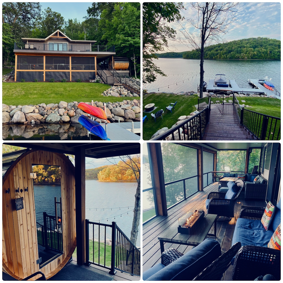 Come relax at this lovely retreat on Mound Lake! You can easily spend all day in the outdoors enjoying the lake, hiking, fishing, kayaking, paddle boarding or lounging on one of the decks. Enjoy the outdoors well into the evening using the outdoor fire pit, new barrel sauna, or relaxing inside the large screened porch. Dock, kayaks & paddle board will be available from May through September. A 2019 Bennington Pontoon (50hp) is available to rent during your stay. Please inquire separately.