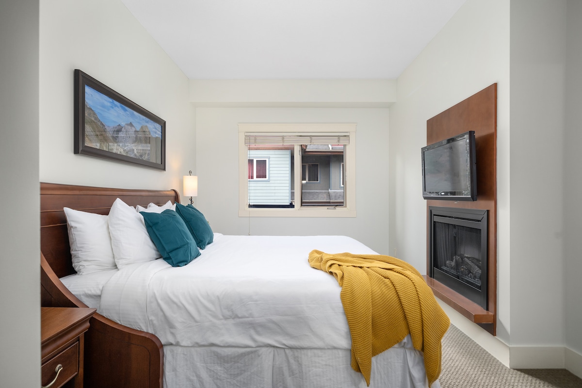 Luxury In The Lodges at Canmore. 28 min to Norquay, 32 to Sunshine. Easy walk to the city center, parks, and public transport. Great location and mountain views. 30 min to Banff, 60 min to Lake Louise. One Bedroom with king bed is best suited for two. There is also a queen sofa sleeper best suited for smaller people. Mini-split AC in bedroom and living area. Gas fireplace. Gas BBQ. Full kitchen. Underground parking No pets please. No parties. Canmore Business License RES-1234