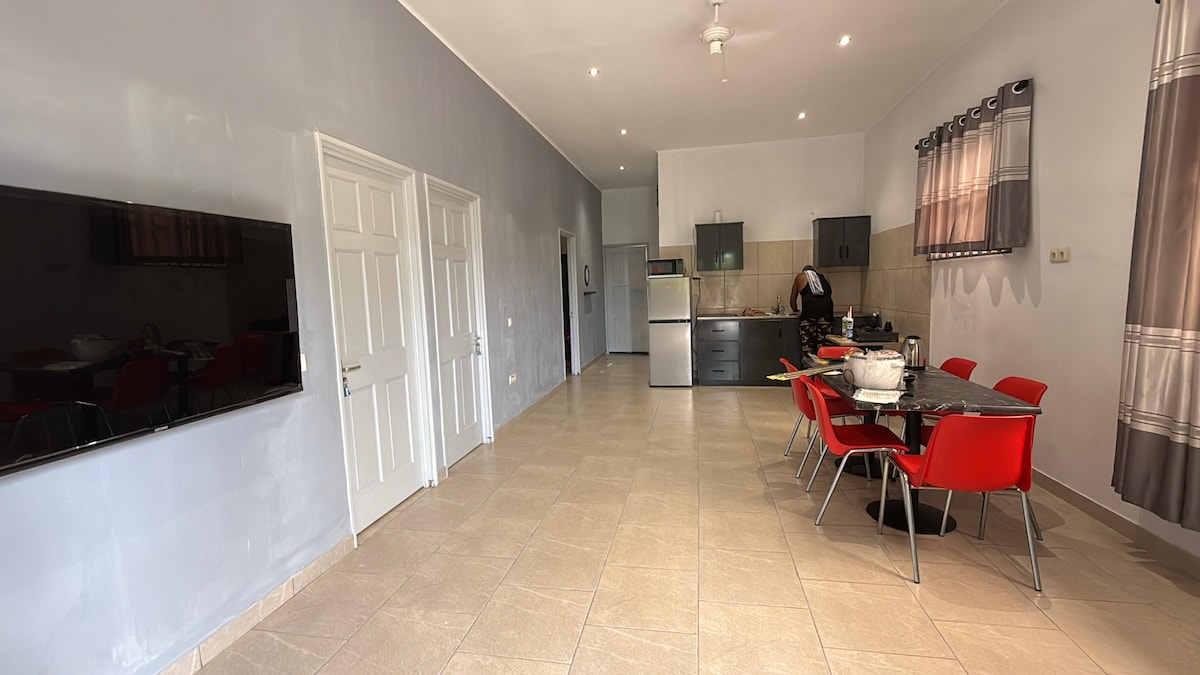 Forget your worries in this spacious and serene space. This appointment is a stone's throw to the beach and it's five minutes walk to the major market for all FRESH food. It is also in the center of the town With access to everything. It is safe, private, and convenient. Next door. has a speedboat service to Suriname ($10-15) and there is also a boat service walking distance that takes visitors to Oreala, the native Amariandian villages ($10-15).