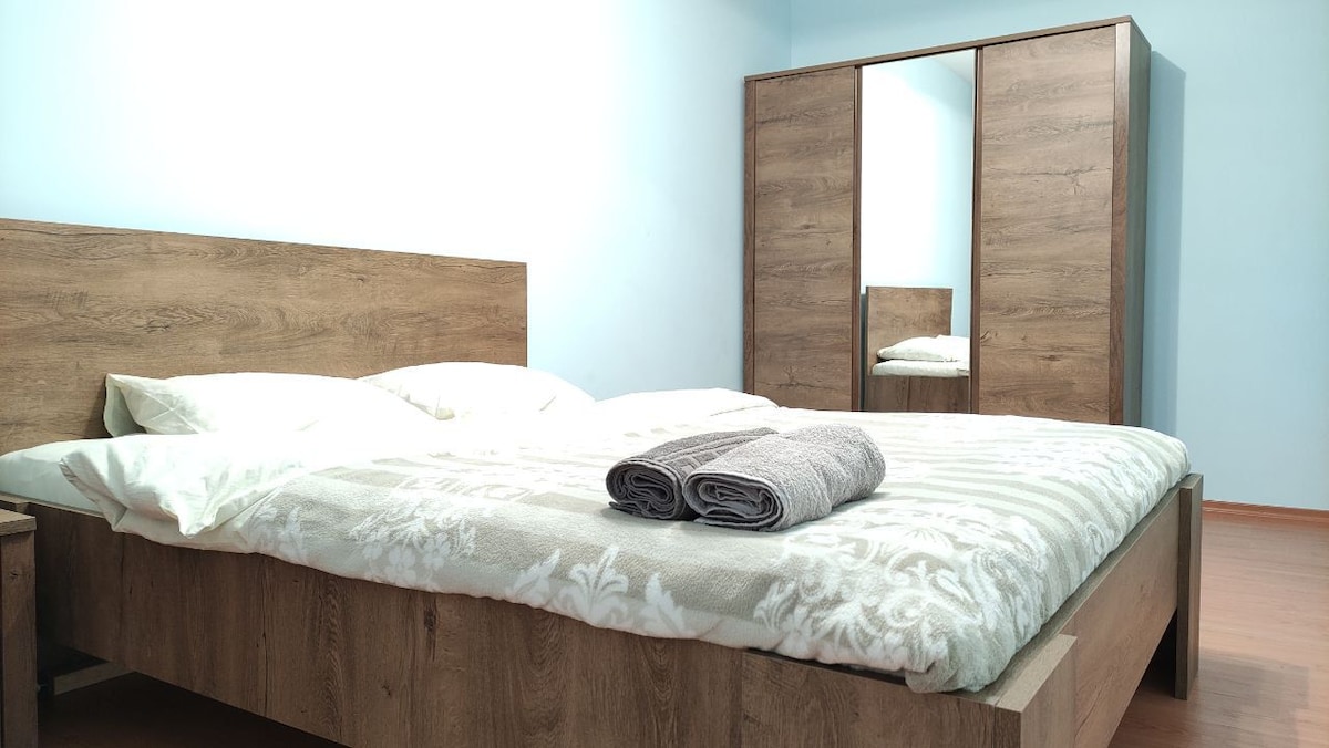 Modern, cozy apartment on the 3rd floor of a 9-storey building with a elevator. Located in a 5-minute walk from both the Central Market and the Glory Park. In the apartment you will find everything you need for a comfortable stay: pleasant dreams will provide you with a soft bed, a soft bed will provide you with a pleasantness, free wi-fi Internet (100 Mbps) and hot water. Also, in the kitchen you will find a set of utensils and cutlery, gas stove, refrigerator, microwave. We provide clean towels and linens