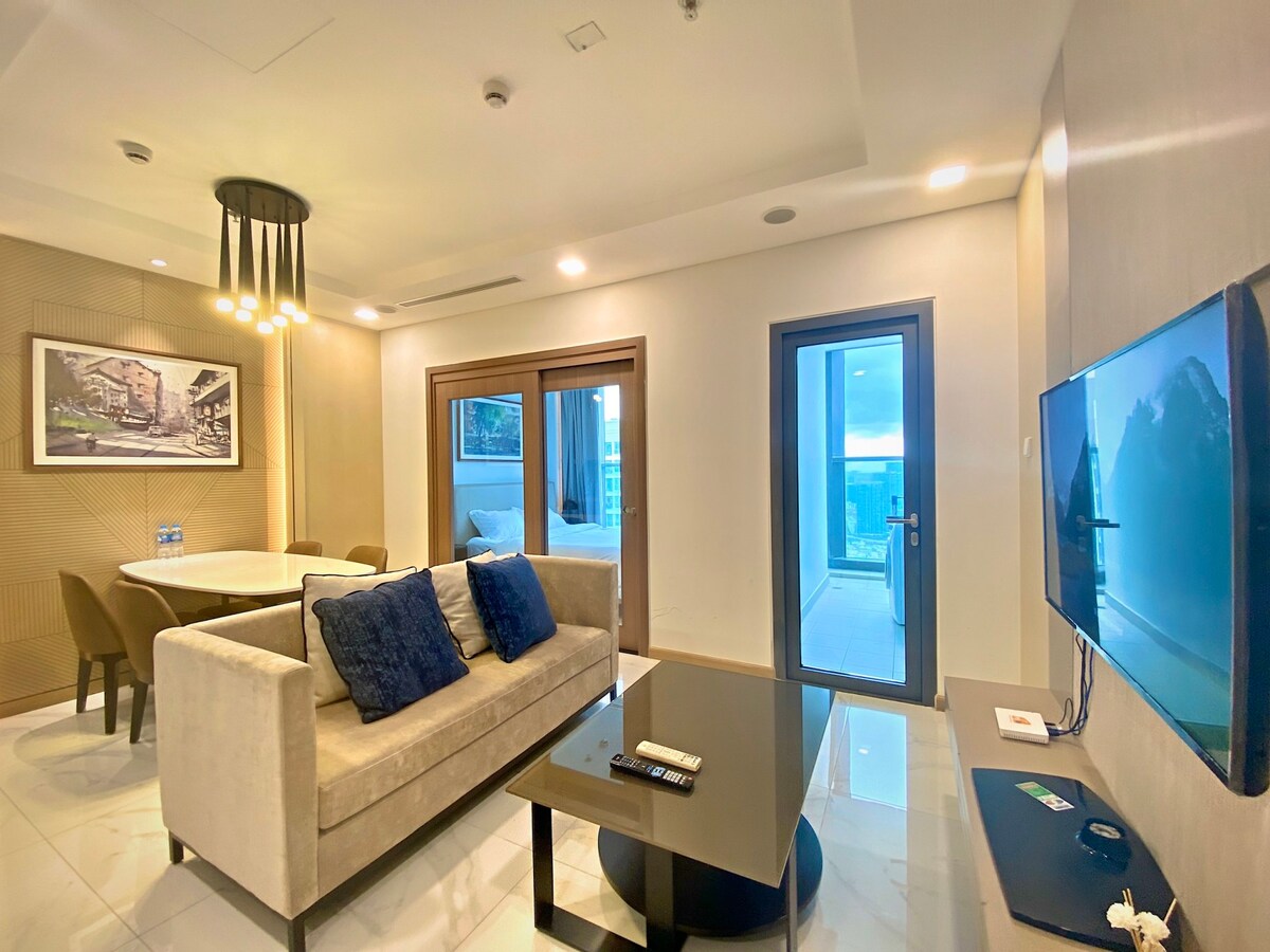 Experience the full spectrum of experiences at this centrally located venue Landmark 81 is the tallest building in Vietnam, high-floor apartments, beautiful view, Nordic style, luxurious, with floating lake, cinema, shopping center, park, 5-star class. . The campus has an area of 20,000 square meters and is the most luxurious urban area in Saigon, Vietnam. The apartment is on the 17th floor of Landmark 6 building, 2 bedrooms, 2 bathrooms. Both bedroom windows and balcony have panoramic views