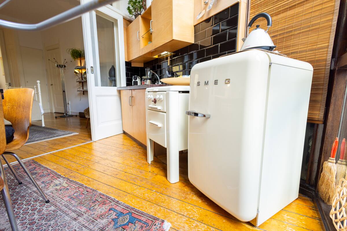 This 60 m2 apartment is ideal for couples on an Europe trip, it's a true home-away-from-home. And it's the perfect spot to explore the city of Utrecht from. Besides this it's also a perfect apartment for couples on a working holiday, because of the two separate work places, 1 in the bedroom and 1 in the living room. There's a strong wifi signal in both spaces, which makes video call's possible. This modern design apartment in a centuries old building (anno 1584) is in the centre of Utrecht.