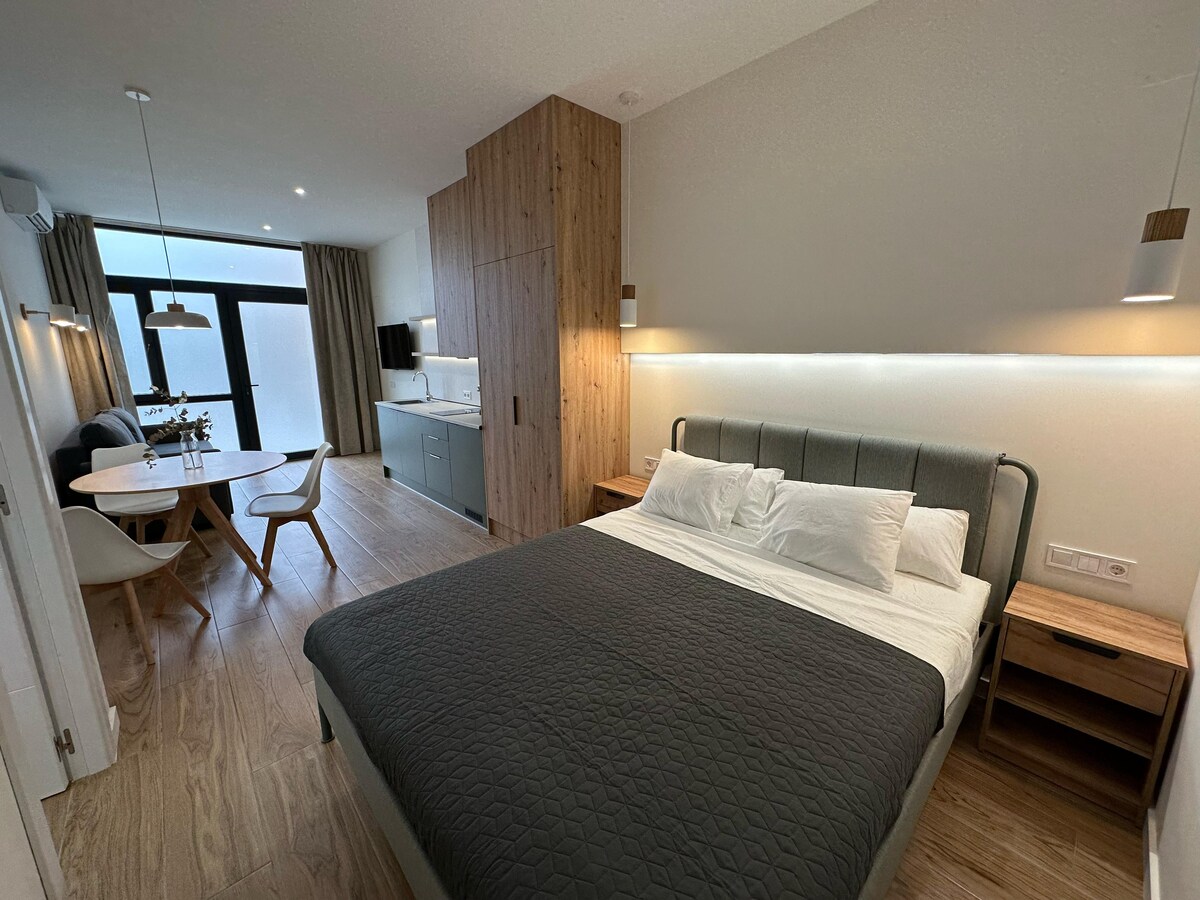 Beautiful flat- aparment for 4 people very comfortable and cozy. To stay as long as you want to. The apartment has a spacious living room with kitchen, a large picture window and two armchairs that you'll be able to use as your reading area, or if you prefer, you can watch the 48'' TV or surf the internet. Their two double bedroom have beds of 160 cm. The flat is completely soundproofed.