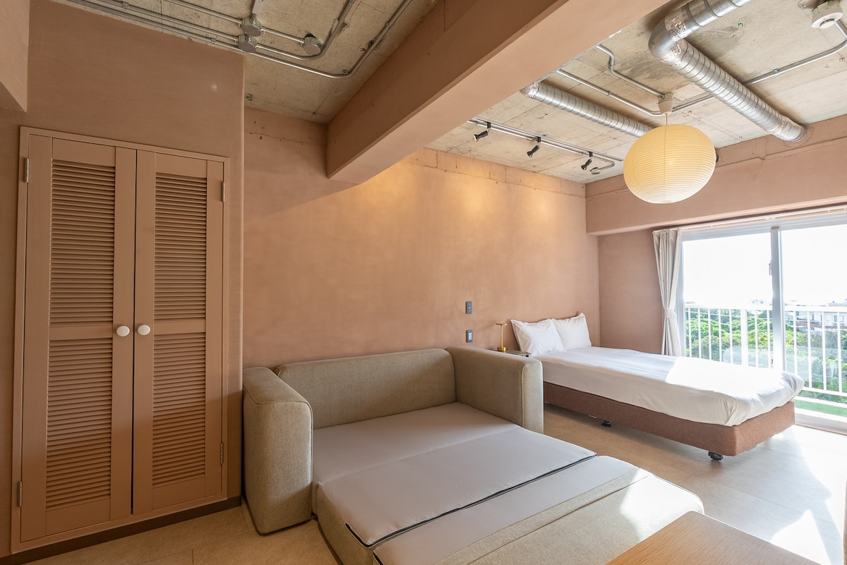 Thank you for viewing my listing. This is a studio in the Condominium Type resort condominium in Onna Village, Okinawa Prefecture. Based on my experience of staying in Hawaii for a long time, "Hawaiian-style second house!"We've DIYed it into a comfortable and convenient space. Until now, this room has been used by OIST (Okinawa Institute of Science and Technology) teachers and students for short to medium term stays. There are also many multinational people, and how to use the manual and appliances are posted in "Japanese, English, Korean, and Chinese". It is also fully furnished with furniture, appliances, and cooking utensils, making it perfect for long-term stays! I'd be☆ glad if you could☆ use it carefully, as if it were your own Okinawa second home.