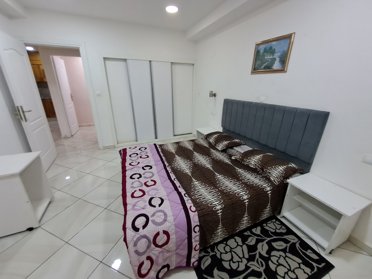 Located in the Fandi residence, opposite the University of Belgaid, "Le 6" is a spacious, pleasant and perfectly equipped 2-bedroom apartment to offer a comfortable stay. The apartment has all the necessary amenities: equipped kitchen, air conditioning, Wi-Fi connection, TV and everything you need, with a play area in the residence. Whether it's a business trip, a family getaway or a visit to the area, "Le 6" is the perfect place to put your bags down.