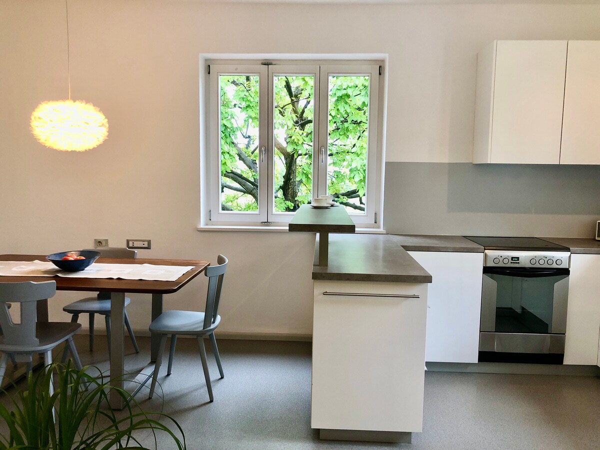 Casa Cecilia is a 68m² apartment for up to 3 people on our organic apple farm in Tramin near Lake Caldaro. Here, Bavarian and South Tyrolean hospitality meet the Mediterranean lifestyle. A stylish, private ambience awaits you in first-class accommodations surrounded by vineyards. The cities of Bolzano, Merano, and Trento are about 30 minutes away, Lake Garda is 1.5 hours away, and Lake Caldaro is 10 minutes away.