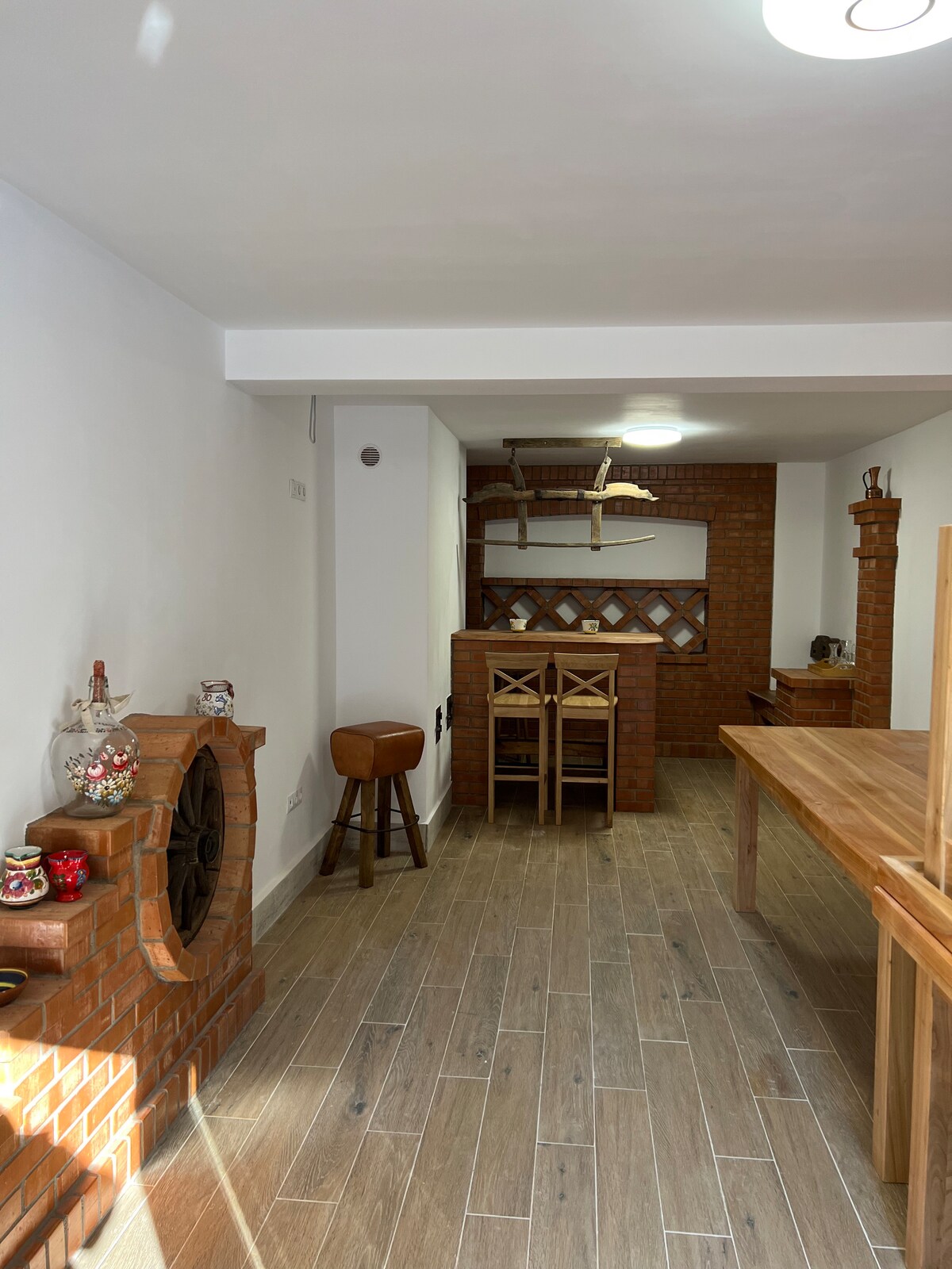 The Cabin/Cabana it’s made of natural wood and it’s treated with fireproof material. Inside it’s rusitic to modern designed with beautiful view and pictures from around the cabin. 4 Double Bedrooms on the 1st floor with one Rest/Cloak room, 1 Master Bedroom with own bath at ground floor, kitchen and living room area, 1 bathroom with shower cabin. Heating the cabin using burning wood Fire place, especially in cold nights it’s necessary to fill it up few times.