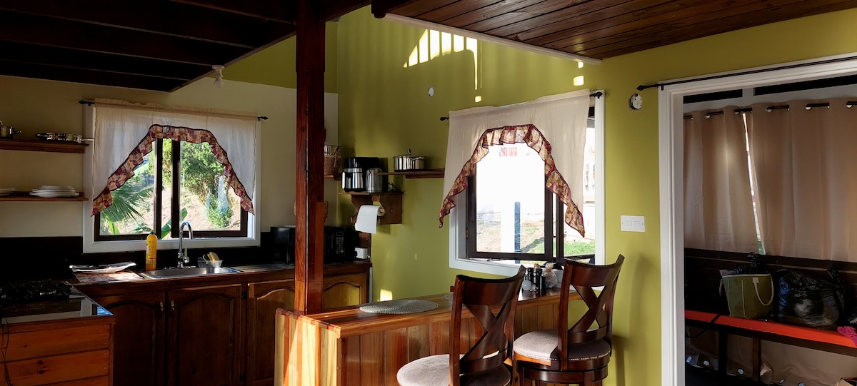 Comfortable, private cottage Fabulous view Authentic village setting For couples/solo travelers looking for simple, safe, low-cost accommodation in a great location 2 minute walk to beach 12 minute walk to village center (1 km) Fully equipped kitchen (no oven) Ensuite bathroom, hot shower High speed internet Dual voltage plugs, no adaptors needed NO AC Mosquito net Door/window screens, fans Security door Parking on site Washing machine Private garden area Outdoor shower Long stay discounts