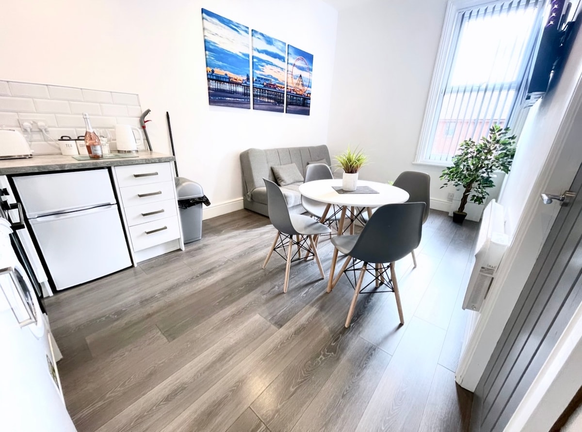 Just a 2 minute walk from Blackpool promenade, this recently refurbished studio apartment features a brand new separate kitchen area and a seperate bathroom area. The lounge area acts as the bedroom as well with a brand new double bed with a very comfortable Emma mattress. Free parking available for up to two vehicles and is just a 2 minute walk to the promenade with access to the tram which can take you into Blackpool, Bispham, Cleveleys and Fleetwood.