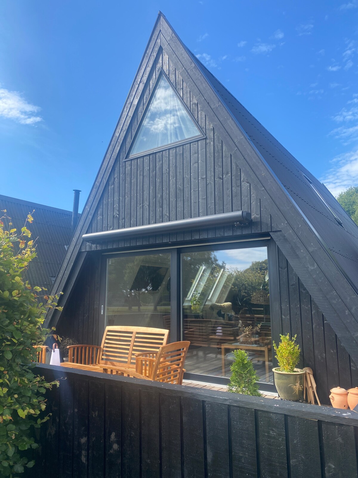 Cozy little A house surrounded by great amenities. 4 beds, but there is plenty of room for an extra bed/mattress in one room, as well as room for a bed on the ground floor. In the house there is air conditioning/heat pump, a wood-burning stove and underfloor heating throughout the lower floor. * Washing machine & Dryer * 55” smartTV with Netflix user. * Weber Spirit gas grill. There is a new and expanded terrace to the east and a small terrace to the west, so the sun can be enjoyed all day. Free access to the water park.