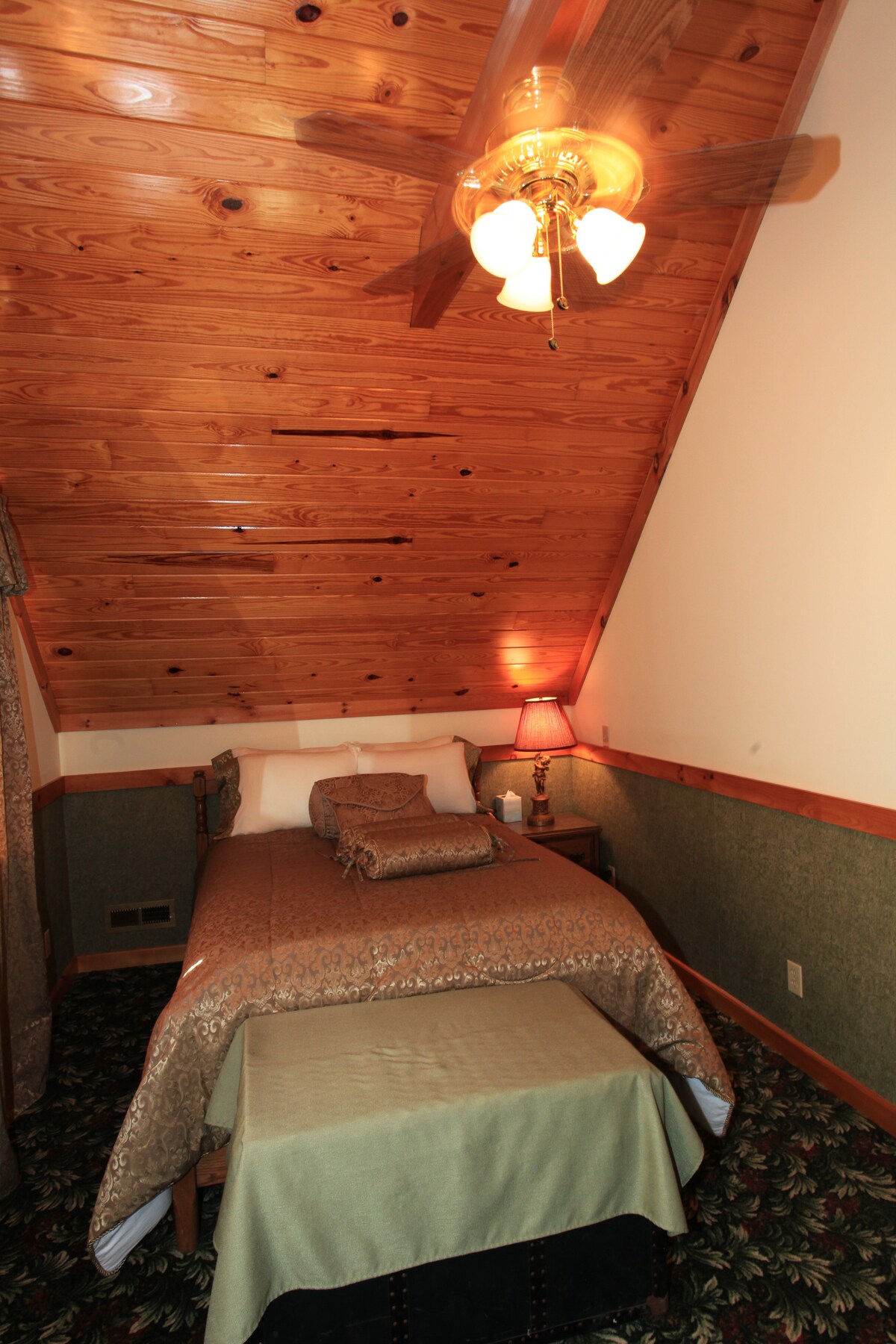 Inner Quest Inn Room: Private spacious upstairs loft area, "one room efficiency floor plan" with queen bed & skylights. Fully equipped kitchen: frig, stove, oven, sink, dishwasher, coffee pot & dinette table. Shower bathroom. Electric fireplace & couch. There is a separate double bed adjoining this room - that can accommodate a third person. (Please note: No children under the age of 12 years as this Inn Room is in the same structure where we offer our quiet peaceful Spa services.)