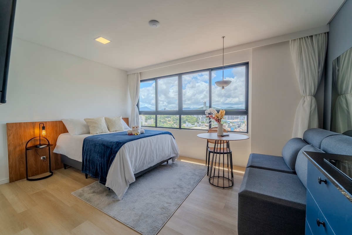 Enjoy our cozy apartment in the heart of Blumenau - SC. Strategically located close to everything, a few steps from the best bars, restaurants, bakery, pharmacies, markets and local attractions. Vila Germânica (Oktoberfest) 1.2 km - 5 minutes Ramiro Ruediger Park - 1.1 km Furb University - 300 meters Giassi Supermarket - 300 meters We offer a full kitchen, comfortable bedroom and integrated living room. Ideal for an unforgettable stay, we are ready to welcome you and ensure your satisfaction.